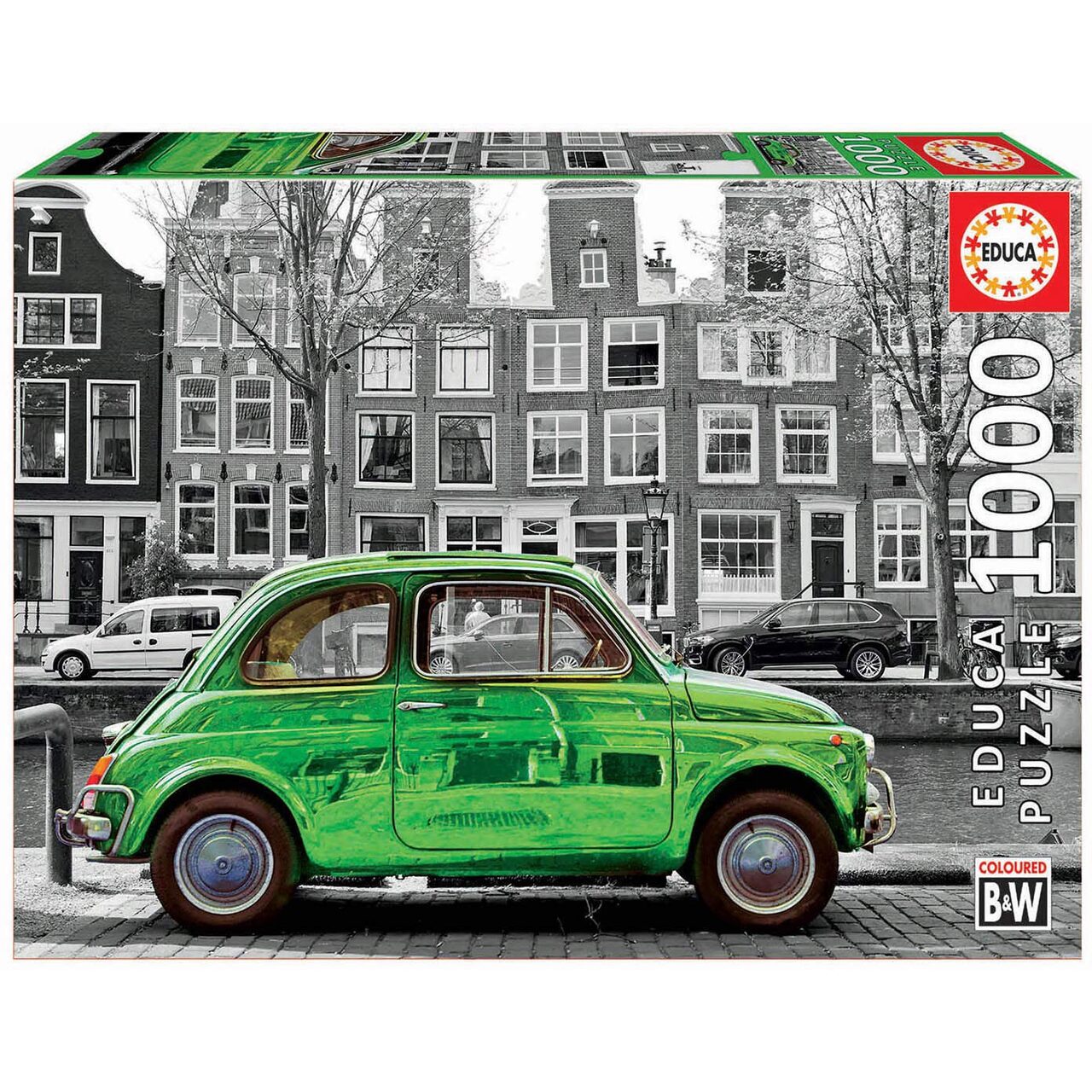 Puzzle Educa - Auto ad Amsterdam, 1000 pezzi in bianco e nero, inclusa colla (18000)
