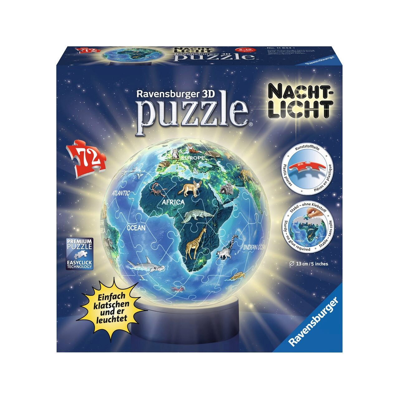 Mappamondo puzzle Ravensburger - Mondo, 72 pezzi, con LED (11844)