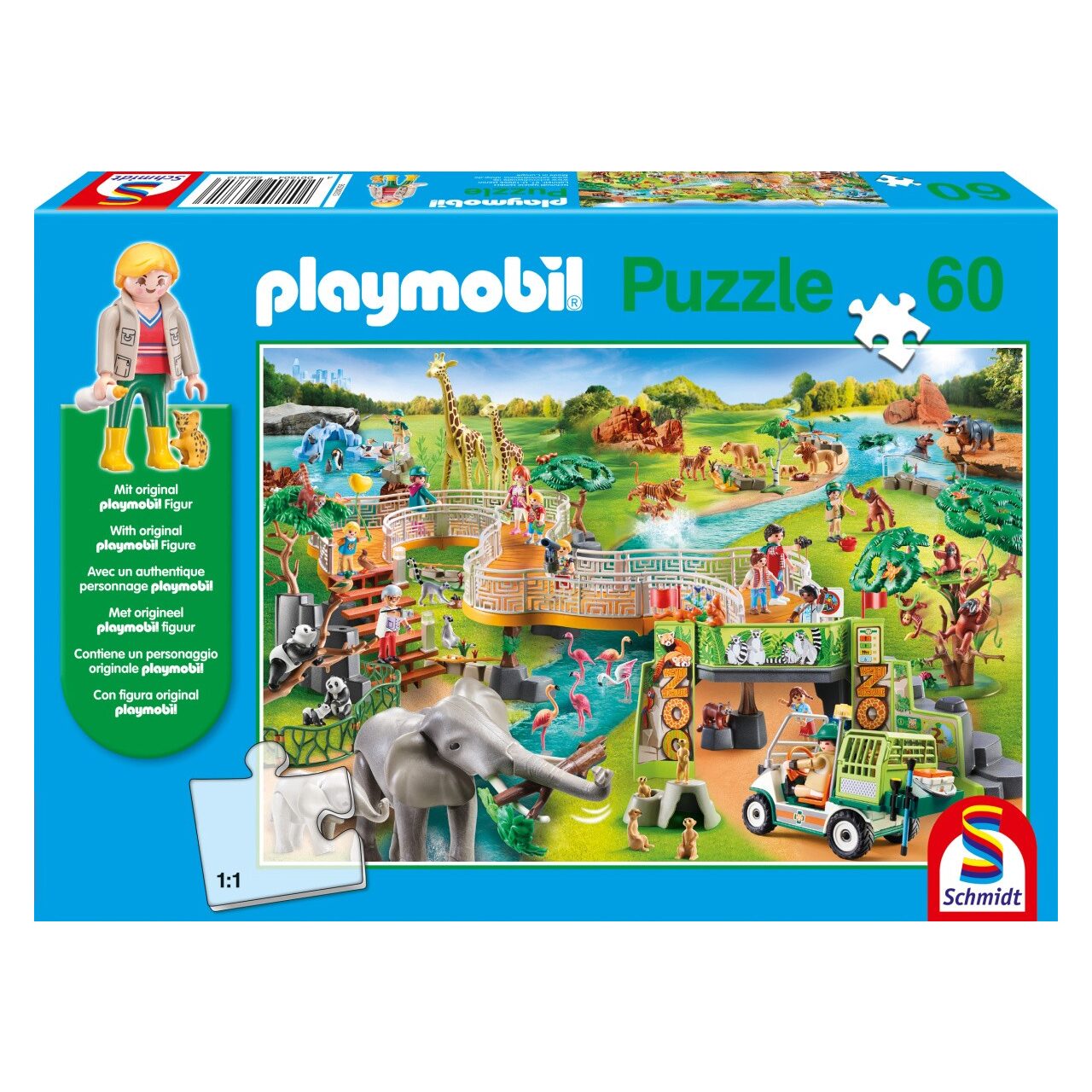 Puzzle Schmidt - Zoo, 60 pezzi, incluso personaggio Playmobil