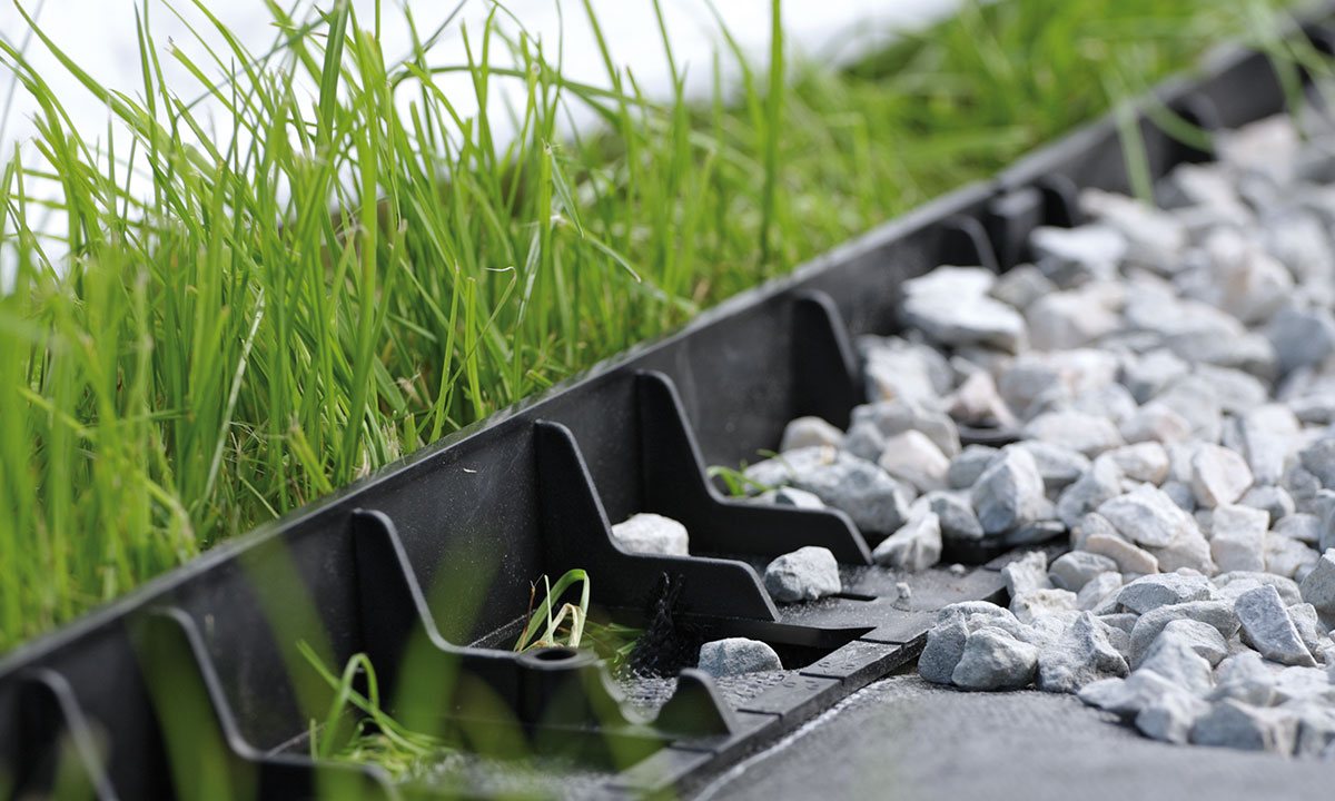 border for lawn, plastic, 28 harpon type, 8 m & nbsp; Covered path with gravel & nbsp; or sand.