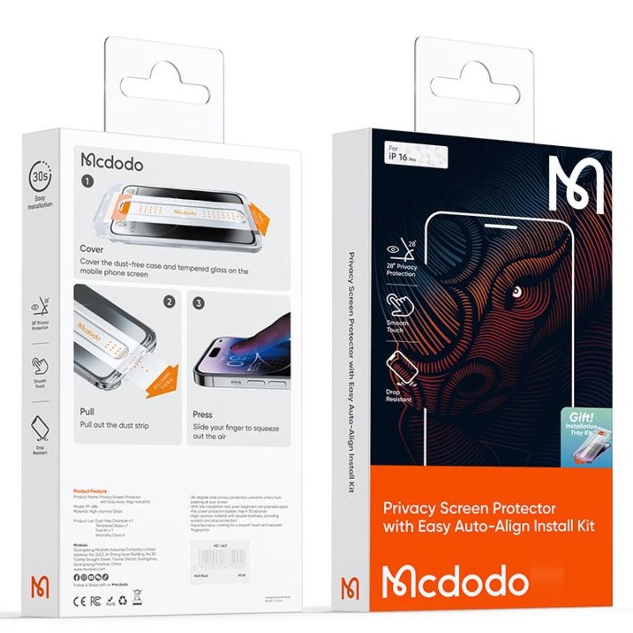 Mcdodo iPhone 16 Plus Privacy Glass Film with Easy Auto-Align Installation Kit