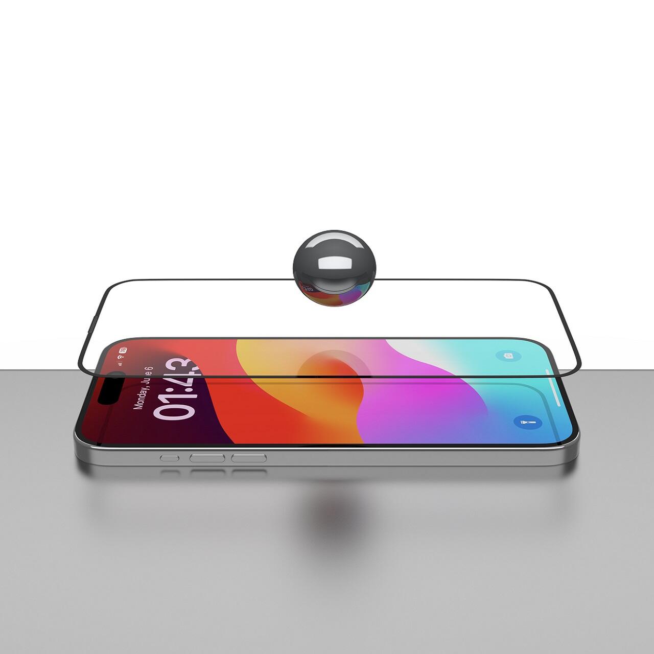 Van Series Ultradunne iPhone 15-glasfilm op volledig scherm, beschermt het scherm van uw telefoon tegen lichte schokken en krassen.