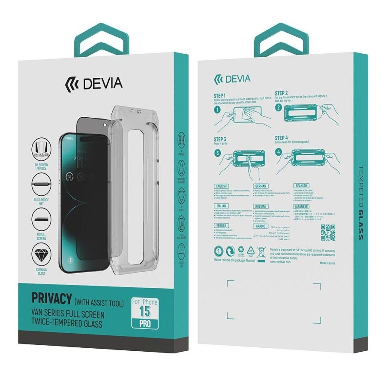 Devia Folie Glass Van Series Full Privacy iPhone 15 Pro, met montagekit Zwart