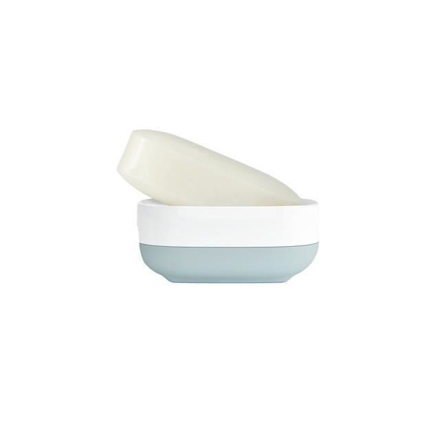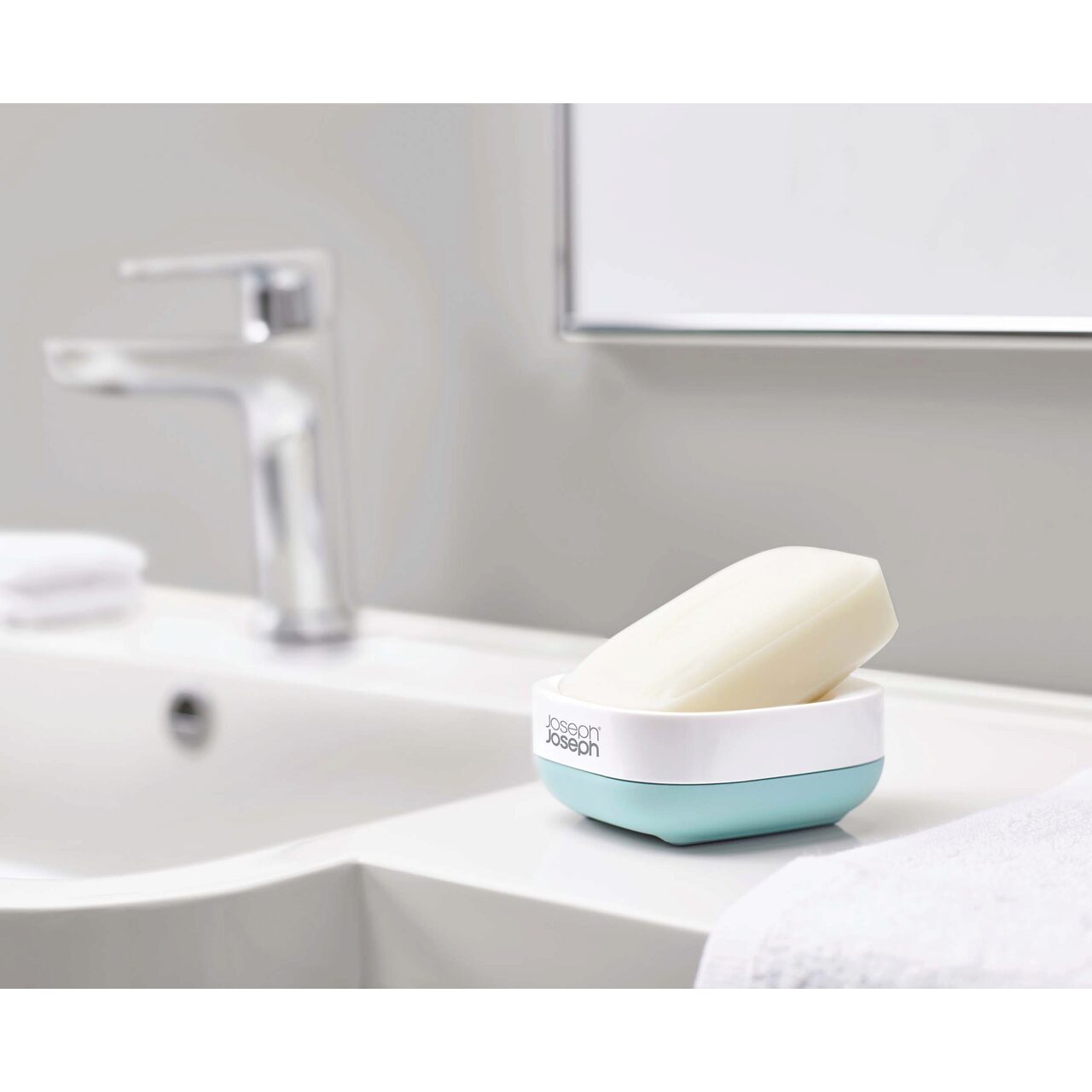 Dit slimme zeepbakje heeft een uniek, hoekig ontwerp dat ruimte bespaart en het resterende water of schuim netjes laat weglopen.