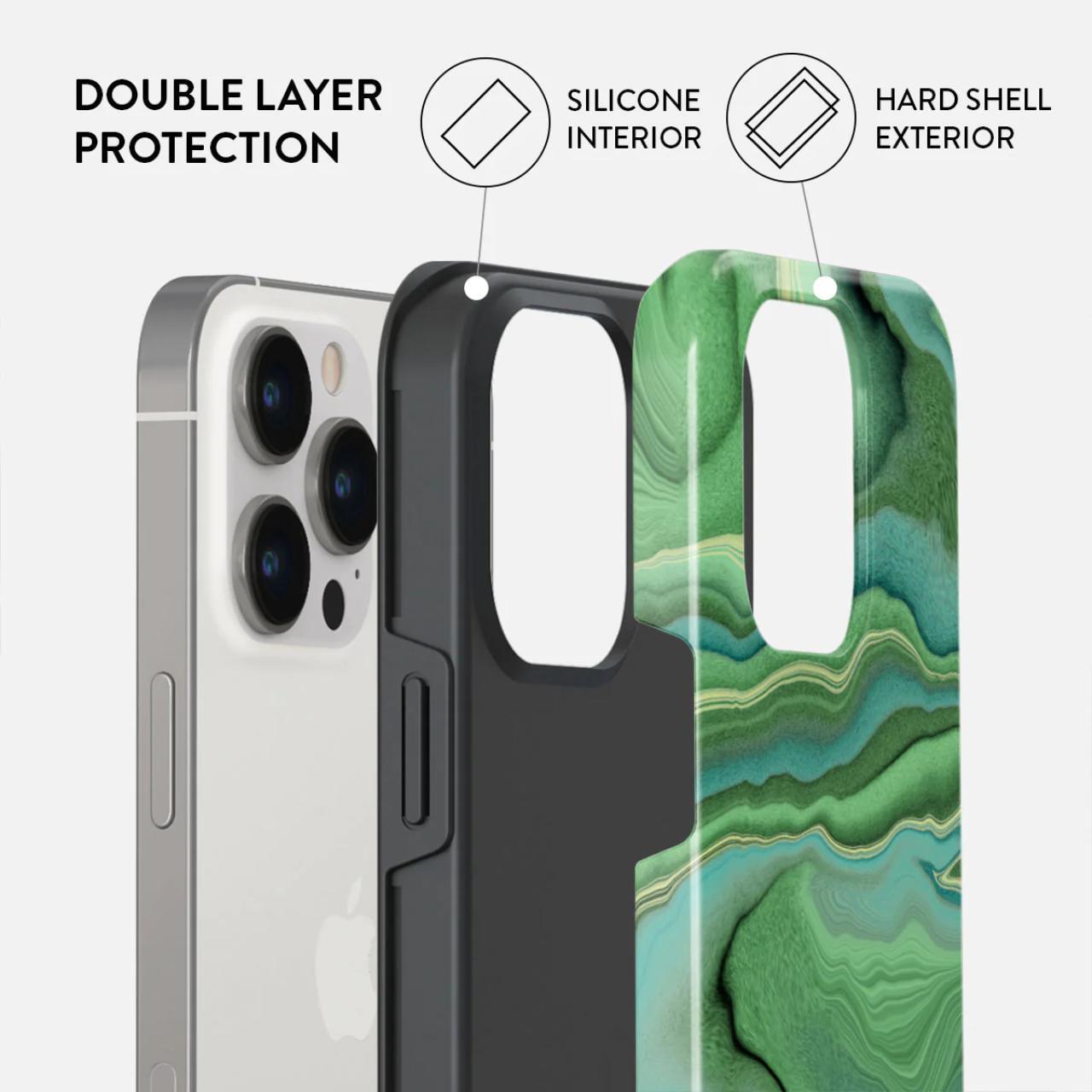 De Burga Dual Layer Rock On case, compatibel met iPhone 14 Pro Max, is gemaakt van hoogwaardige materialen die slijtage aan je telefoon voorkomen.