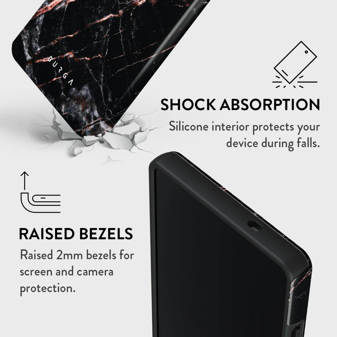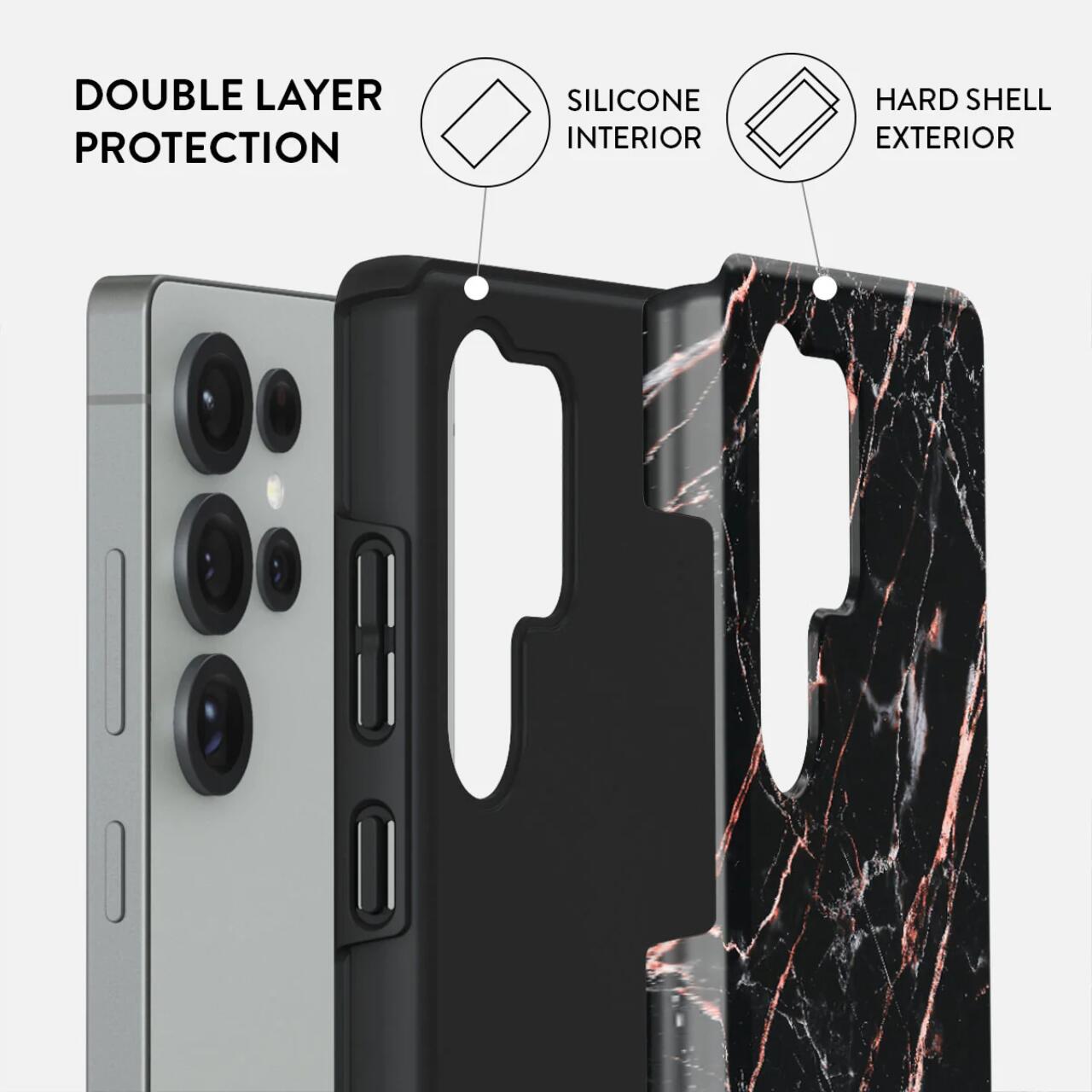Het Burga Dual Layer Rose Gold Marble Samsung Galaxy S25 Ultra hoesje is gemaakt van hoogwaardige materialen die slijtage van uw telefoon voorkomen en dankzij het innovatieve ontwerp trekt u zeker alle ogen.