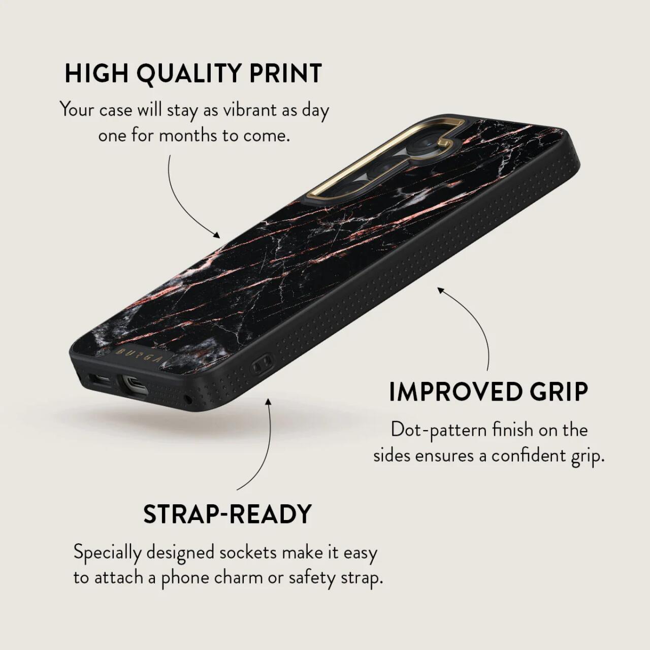 Het Elite Gold Rose Gold Marble hoesje van Burga is gemaakt van hoogwaardige materialen die slijtage van uw telefoon voorkomen en dankzij het innovatieve ontwerp trekt u zeker alle ogen.
