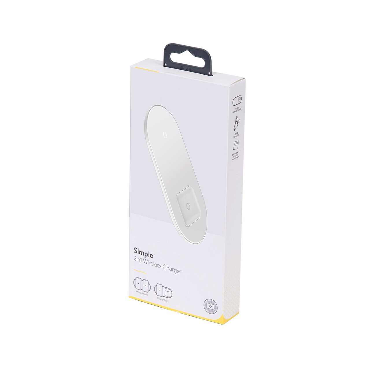 Draadloze oplader 15W Baseus Simple 2 in 1 Wit
