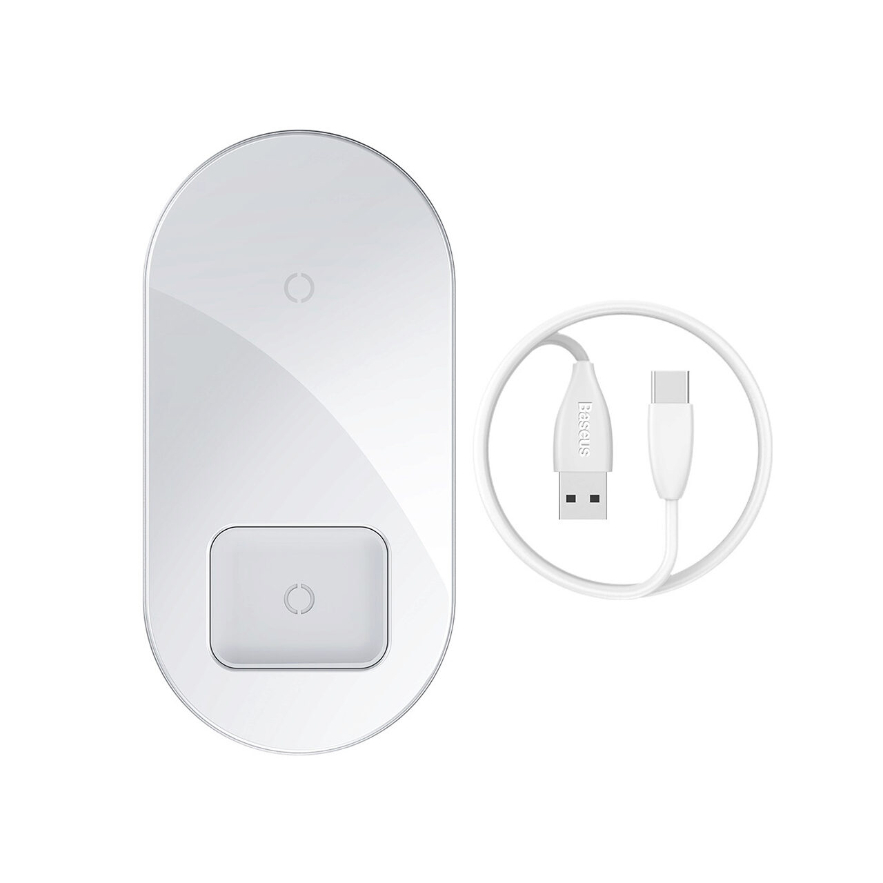 BASEUS Simple 2 in 1 draadloos 15W wit (voor telefoons en airpods)