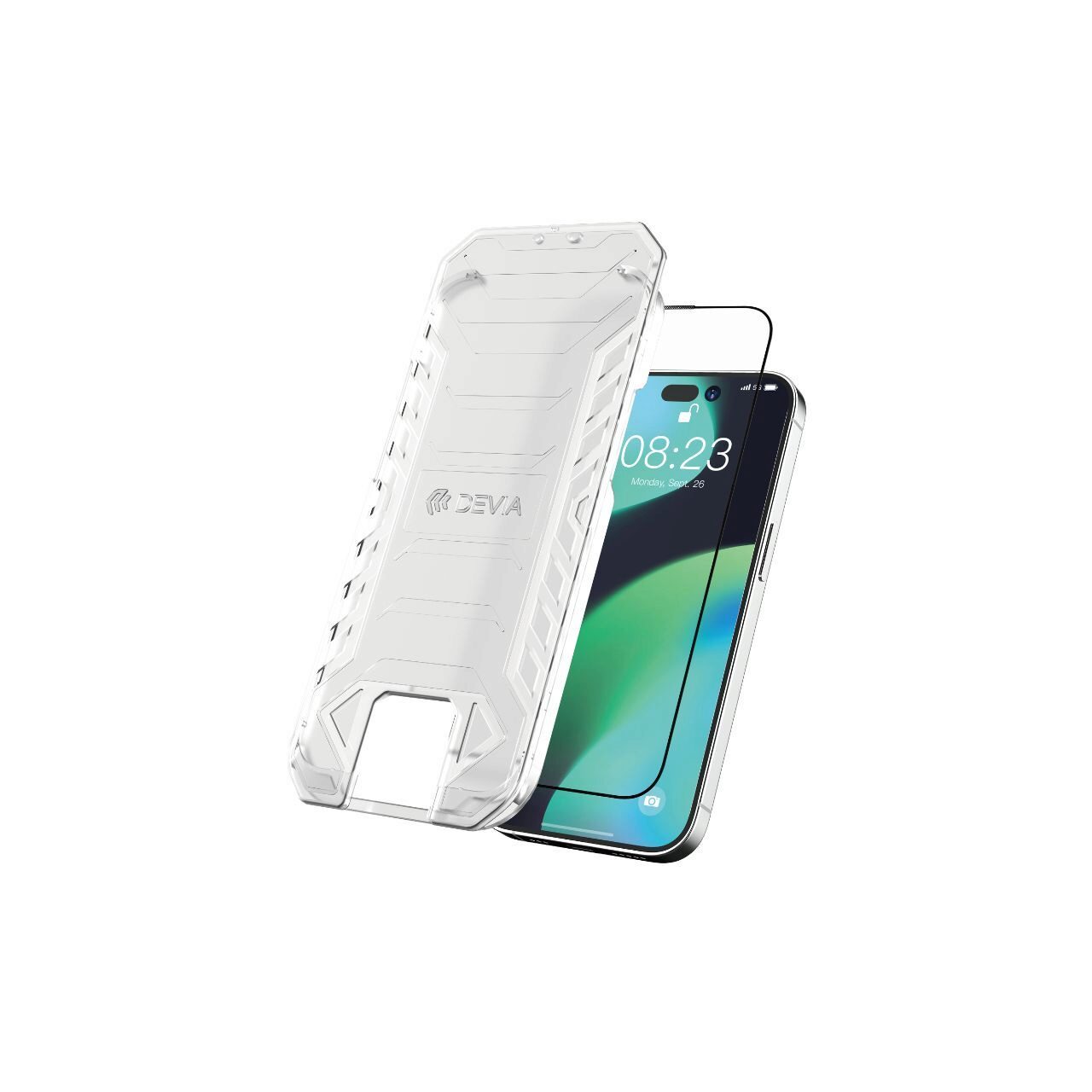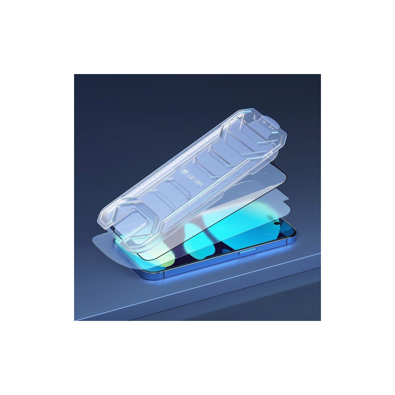 FOIL BY VAN-serie Scherm op volledig scherm 9h, met speciale montagekit voor Devia voor iPhone 14 Plus /iPhone 13 Pro Max is een premium gematigde (veilige) folie, zeer bestand tegen krassen en schokken. De folie bedekt het hele scherm van de telefoon, is alleen transparant op het scherm, waarbij de rest van het oppervlak zwart is, zodat deze perfect kan worden afgestemd op uw smartphone.