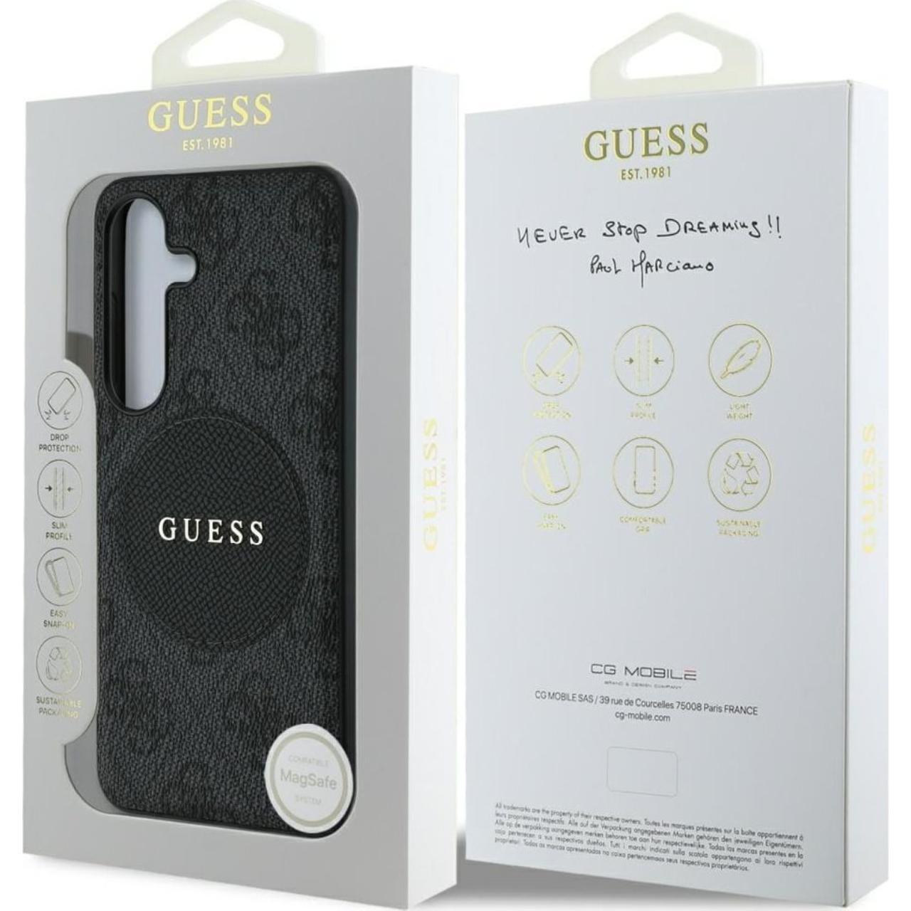 De Guess 4G Round Patch Classic Logo MagSafe-cover, compatibel met de Samsung Galaxy S25, is de perfecte combinatie van elegantie en functionaliteit en beschermt de telefoon tegen krassen en stoten.