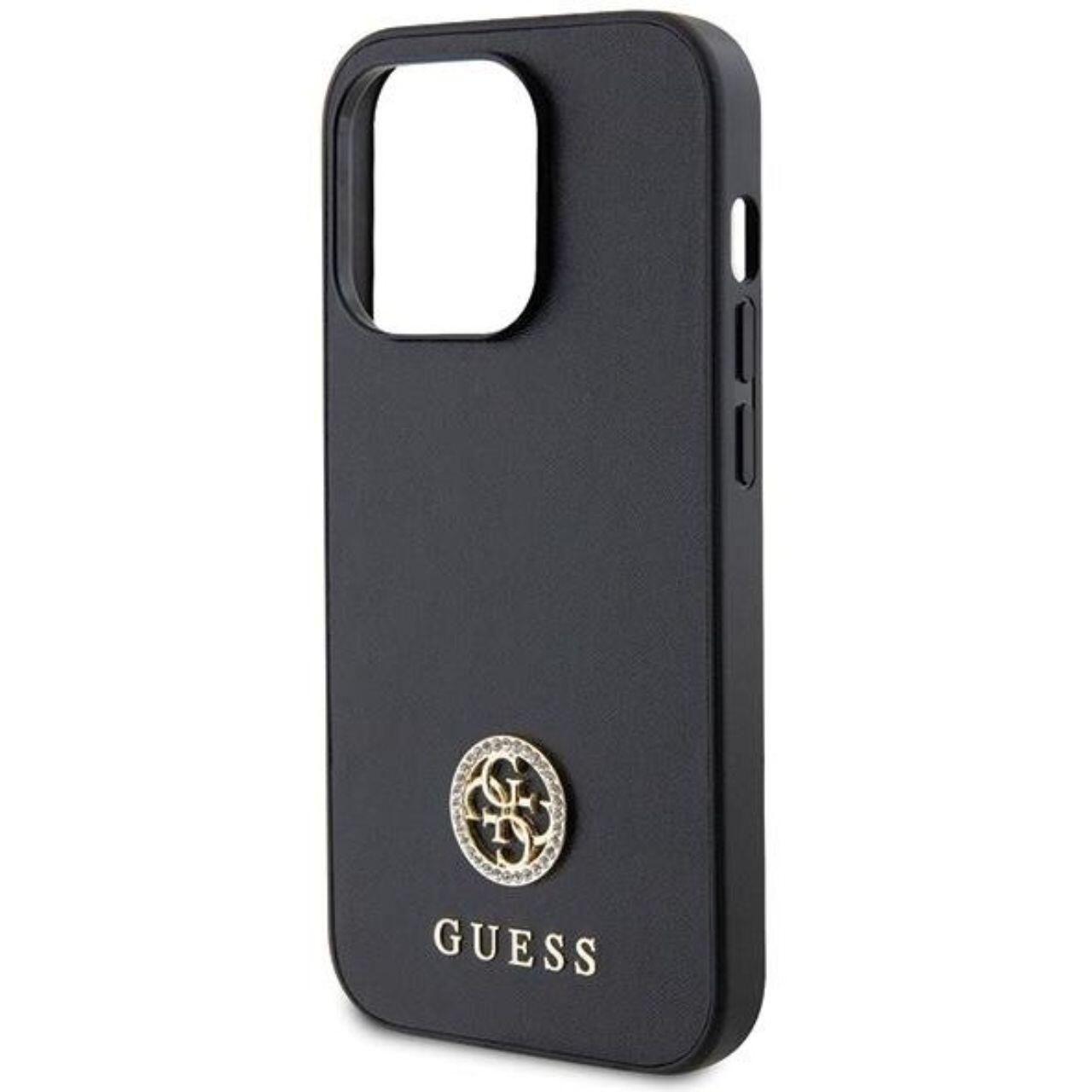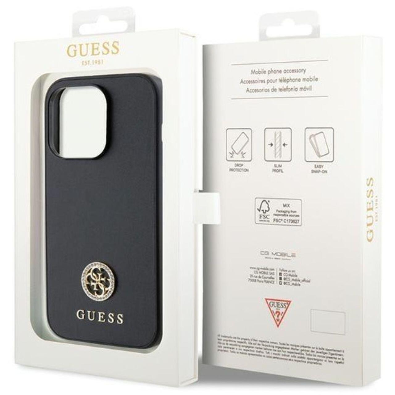 Guess Case 4G Strass Metal Logo iPhone 15 Pro Zwart