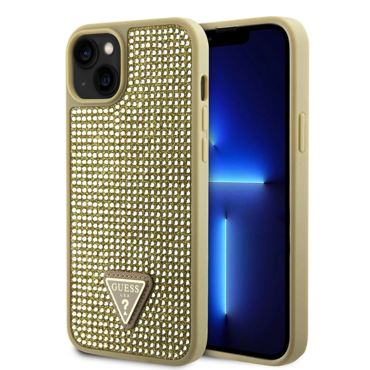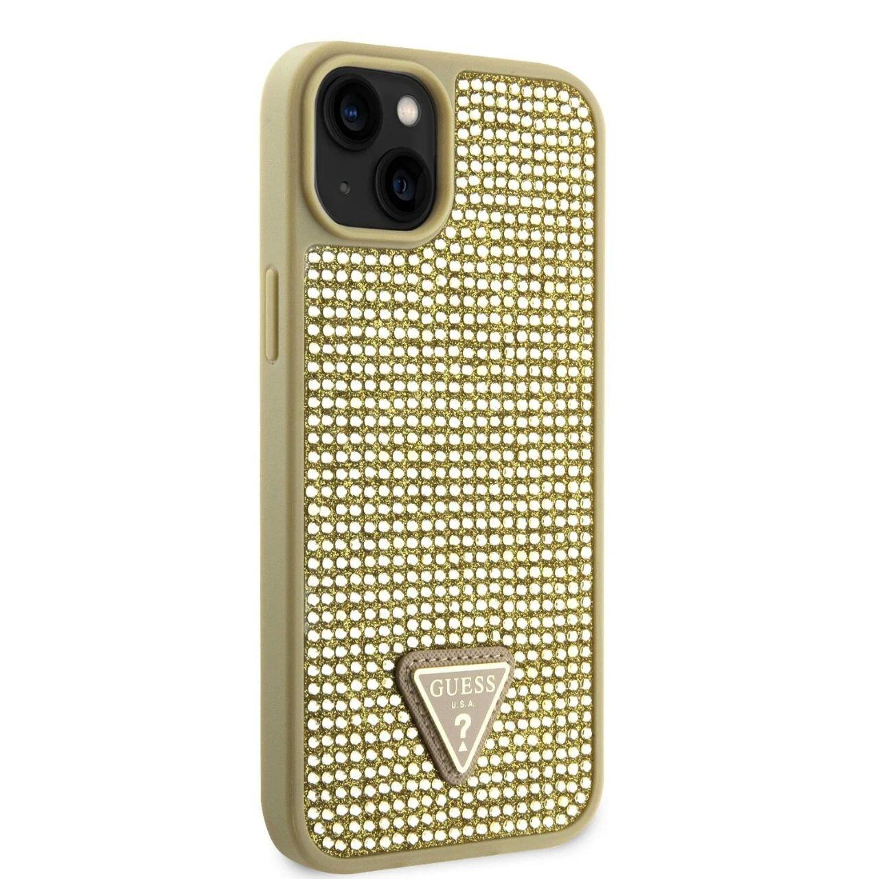 Guess Case Strass Driehoek Metalen Logo iPhone 15 Goud