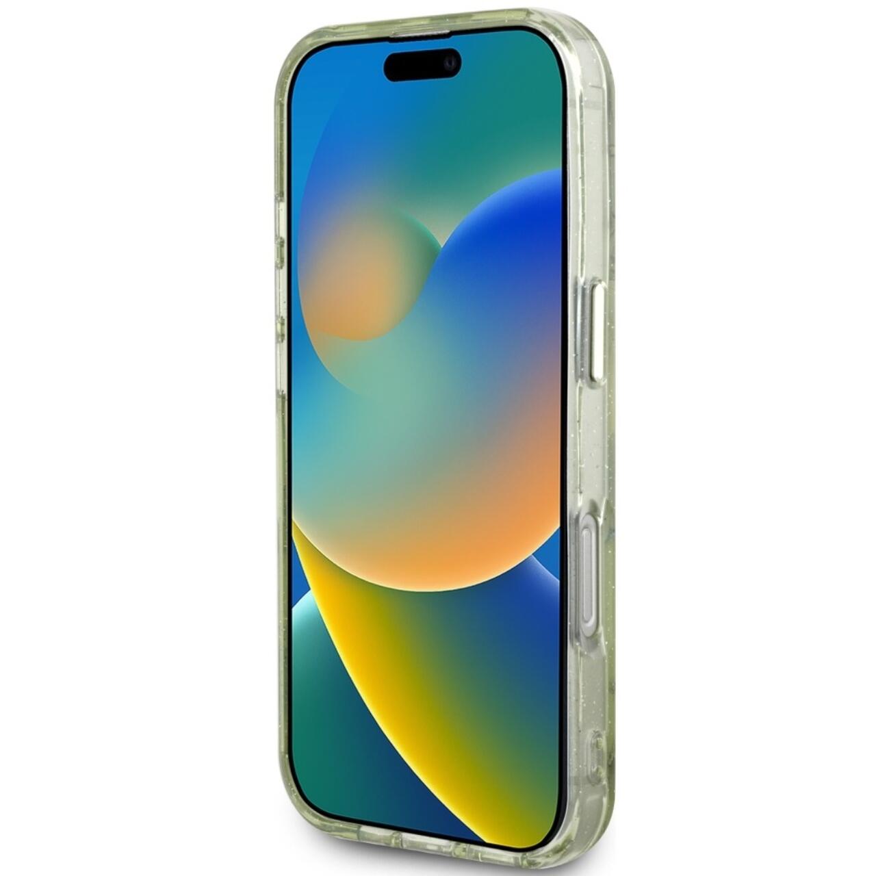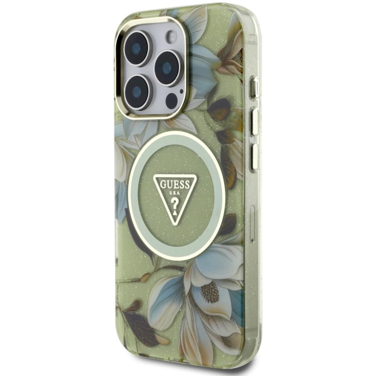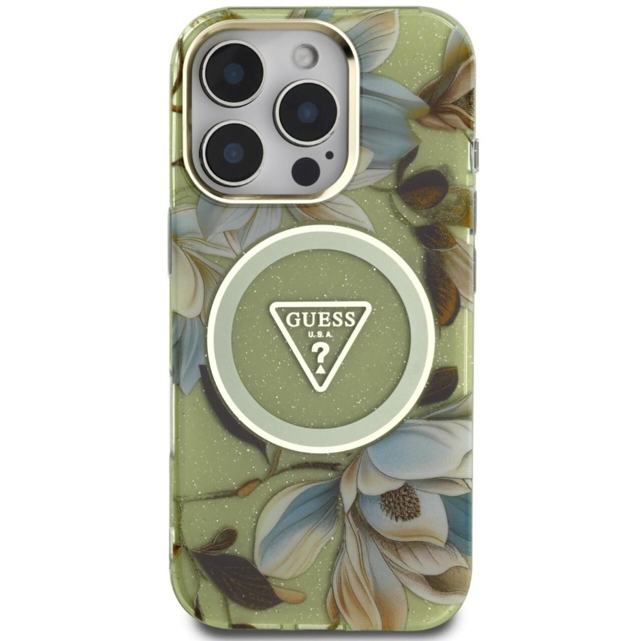 Guess Hoesje Glitter Bloemen Driehoek Knoppen MagSafe iPhone 16 Pro Max Groen