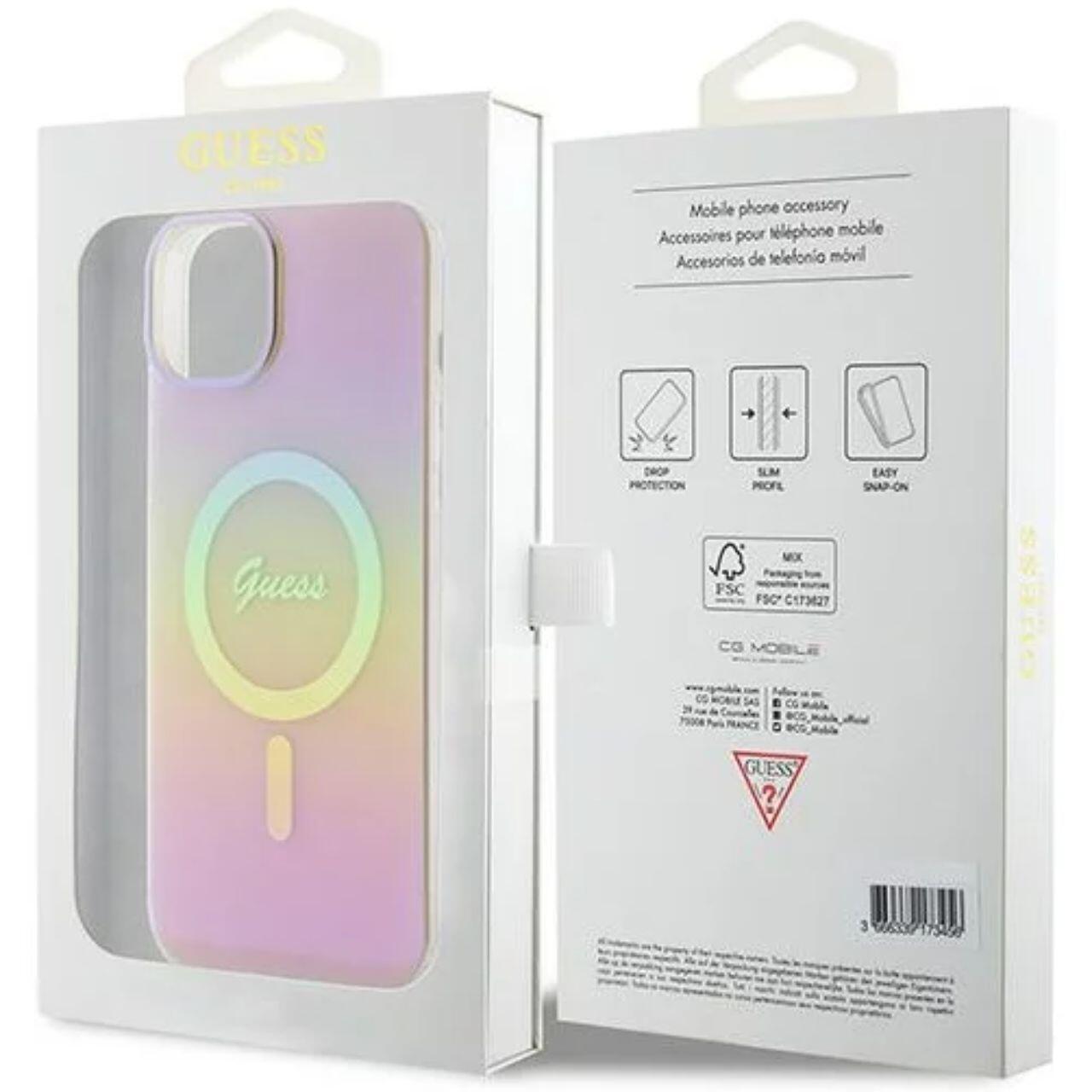Guess Case Iridescent Script MagSafe iPhone 15 Roze