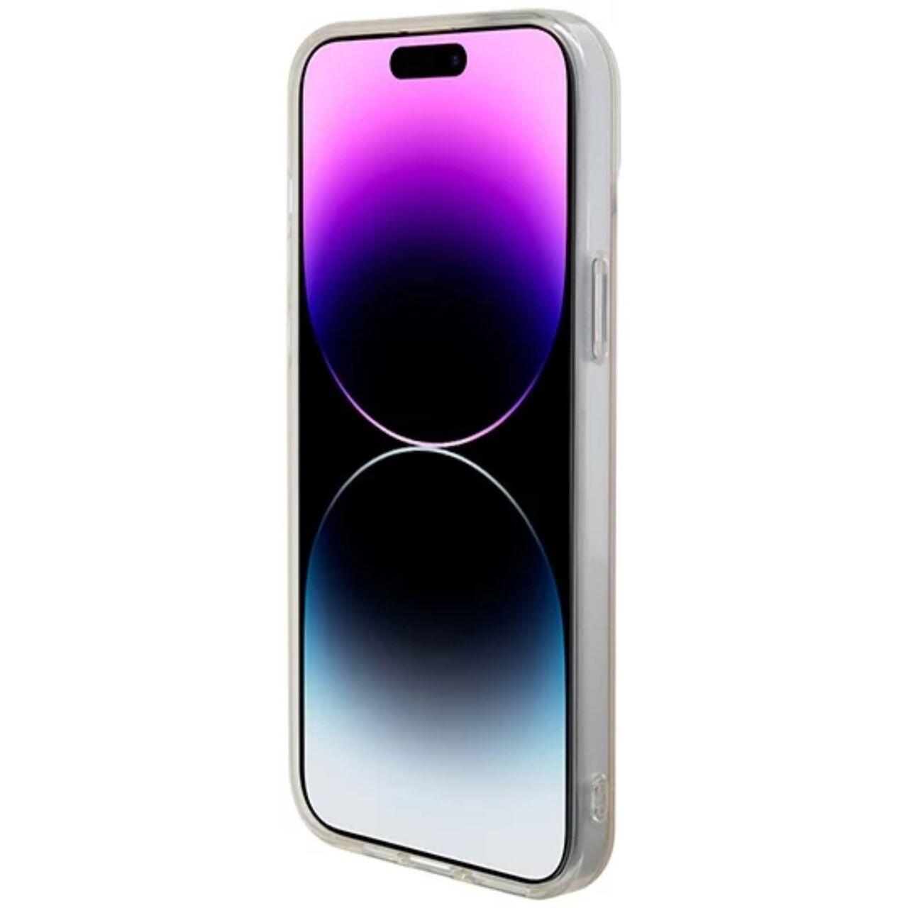 Iridescent Script MagSafe hoesje voor iPhone 15 van Guess, is een hoesje dat verandert van tint afhankelijk van de lichthoek, waardoor uw telefoon een ongelooflijk indrukwekkend uiterlijk krijgt en er niet alleen prachtig uitziet, maar ook perfecte bescherming biedt tegen krassen, schaafwonden en vuil.