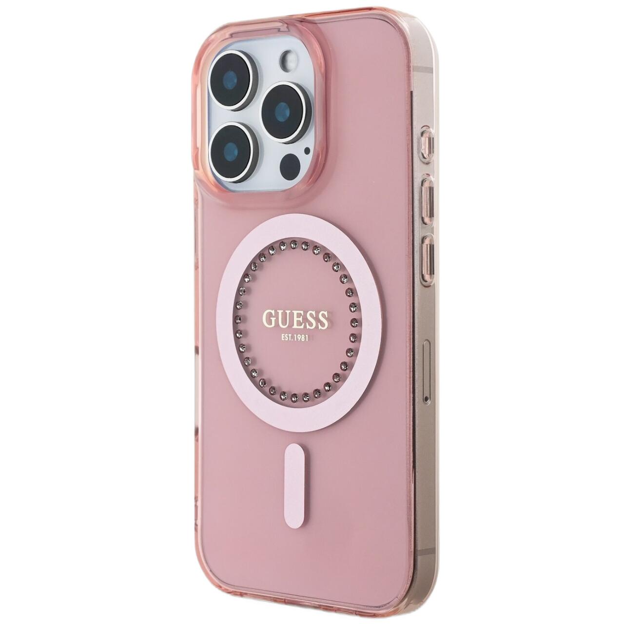 Guess Case Rhinestones Ring MagSafe iPhone 16 Pro Max Roze