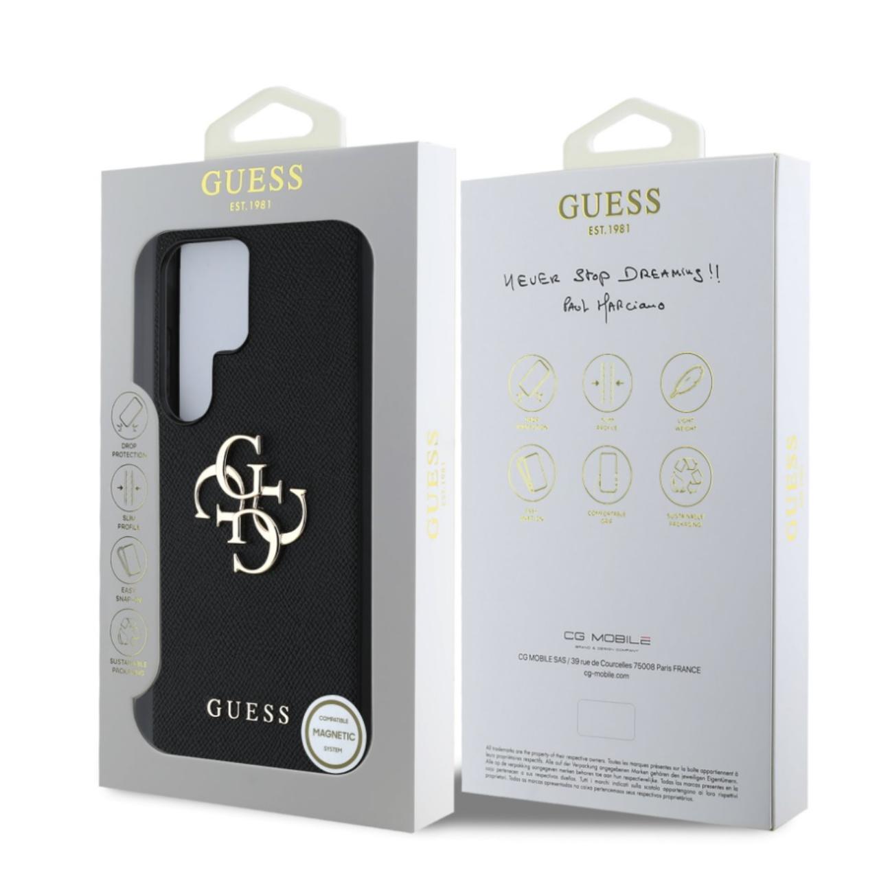 Guess Cover PU Grained 4G Metal Logo Samsung Galaxy S25 Ultra Zwart