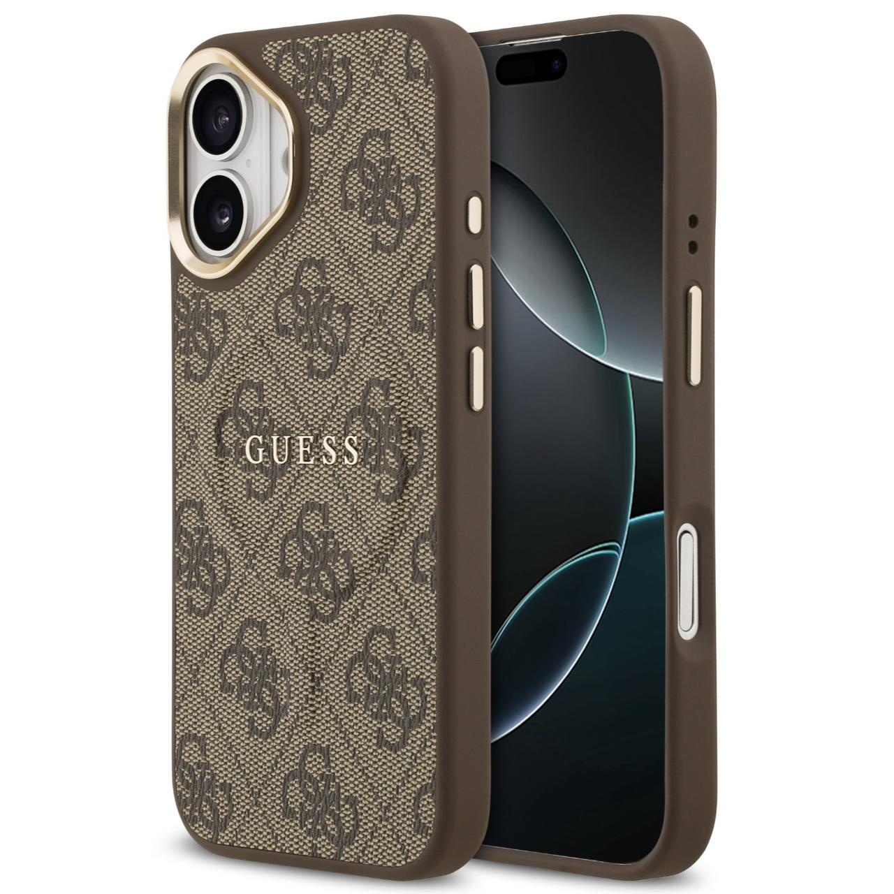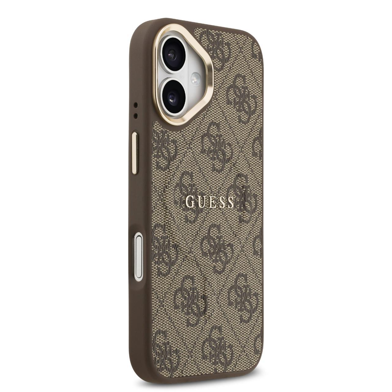 Guess Hoesje PU Leer 4G Goud Frame MagSafe iPhone 17 Bruin