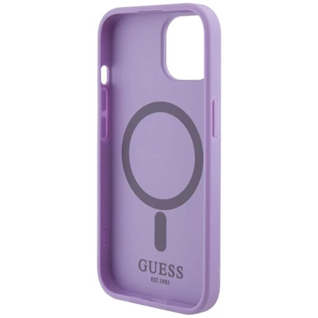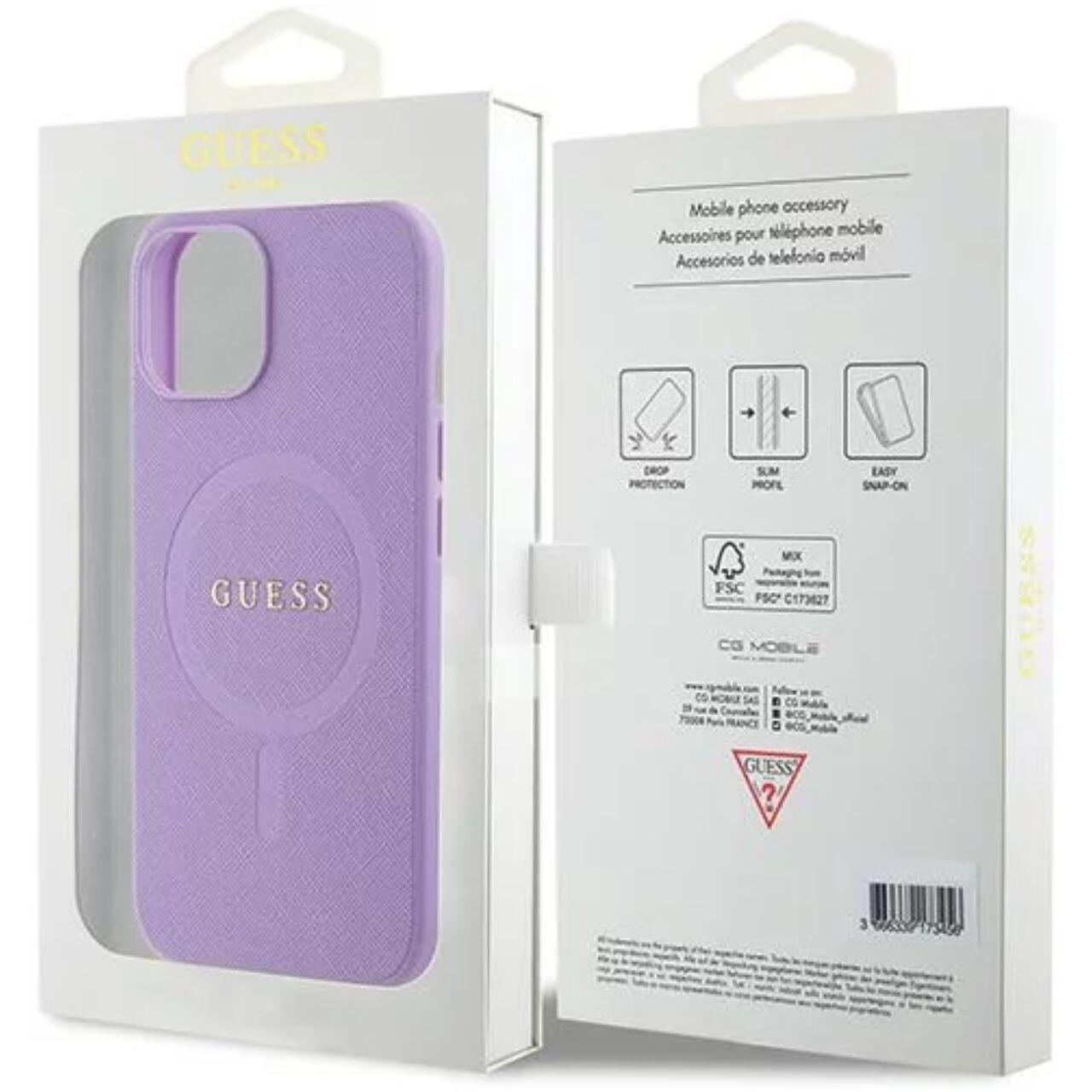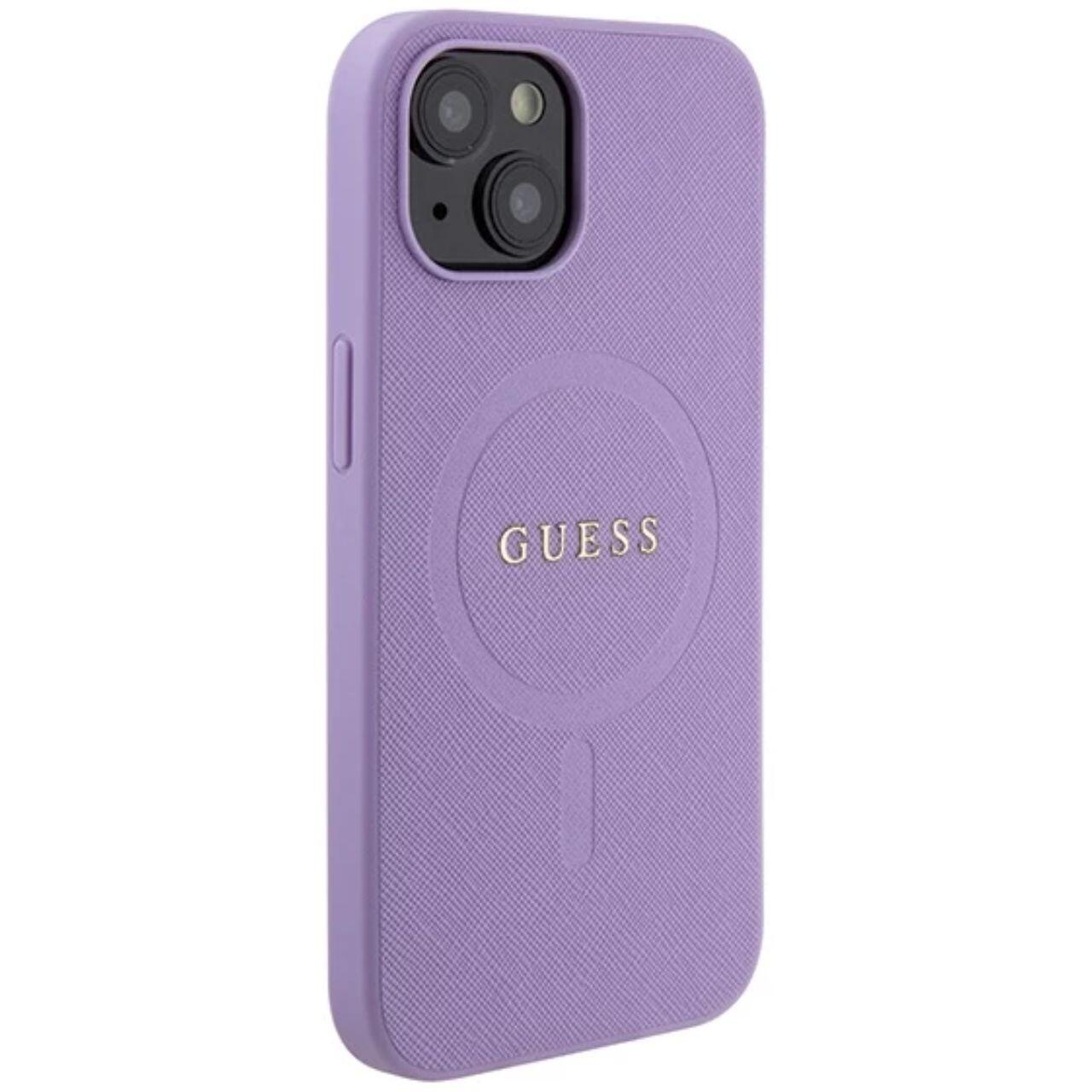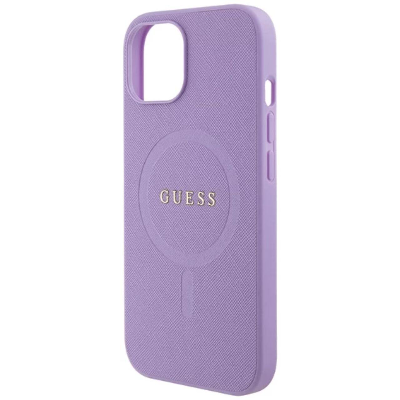 Guess Saffiano MagSafe iPhone 15 Hoesje Paars