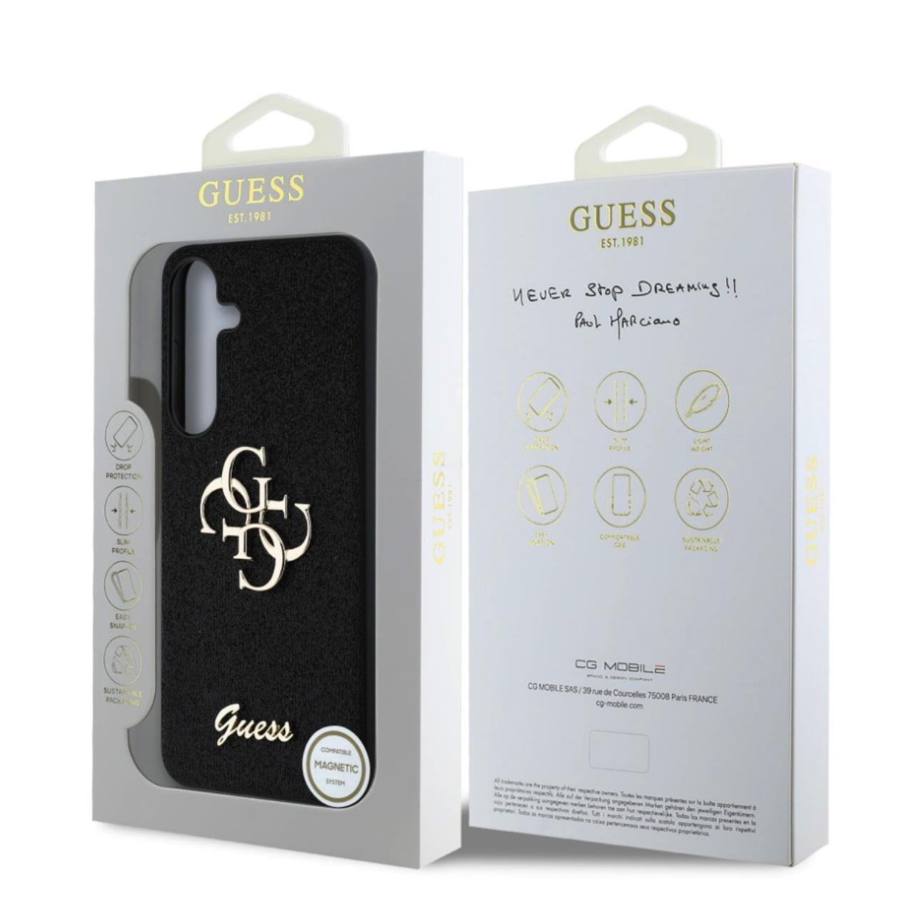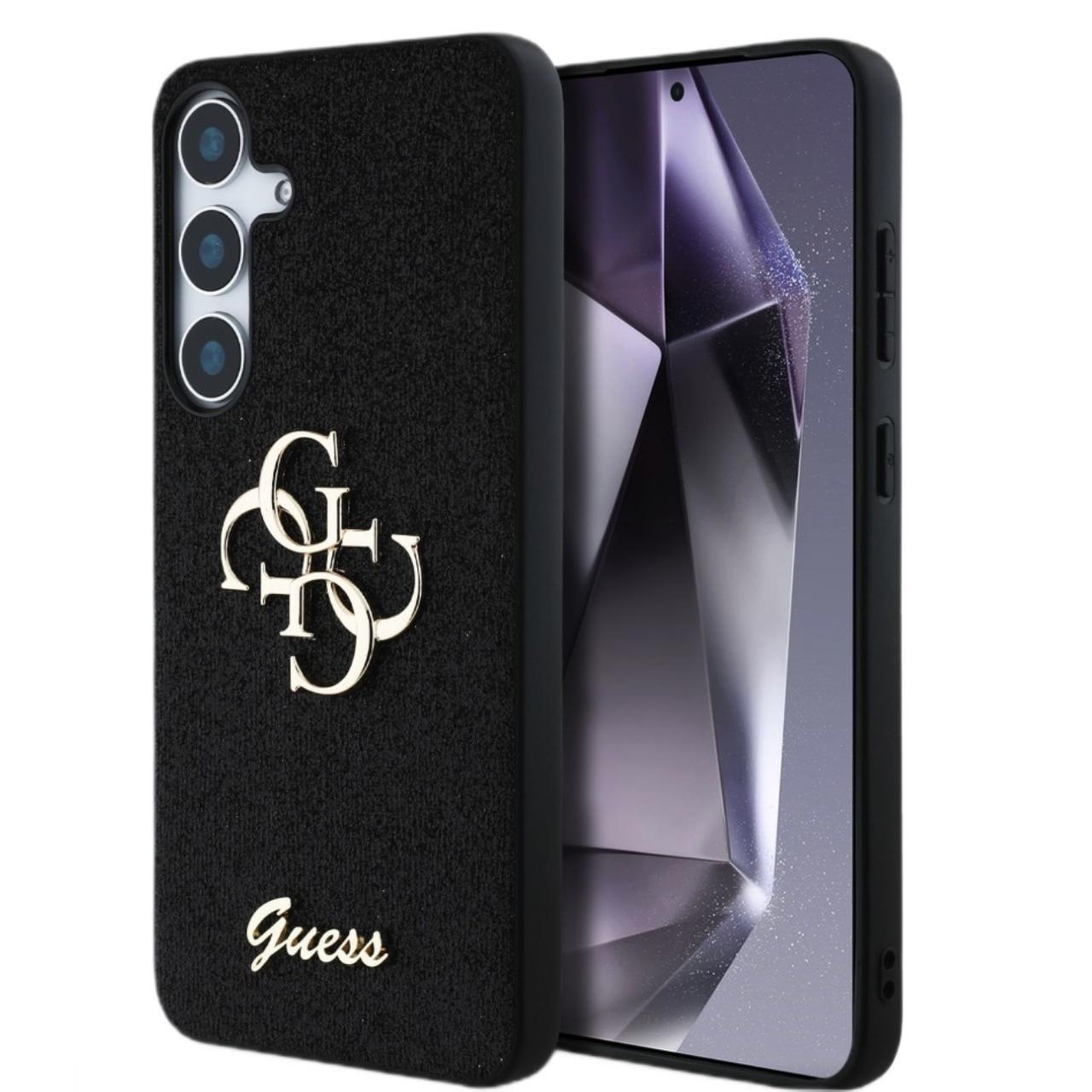 Guess Hoesje Vaste Glitter 4G Metalen Logo Samsung Galaxy S25 Zwart