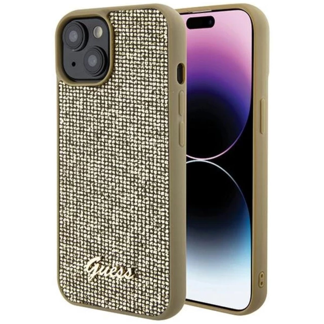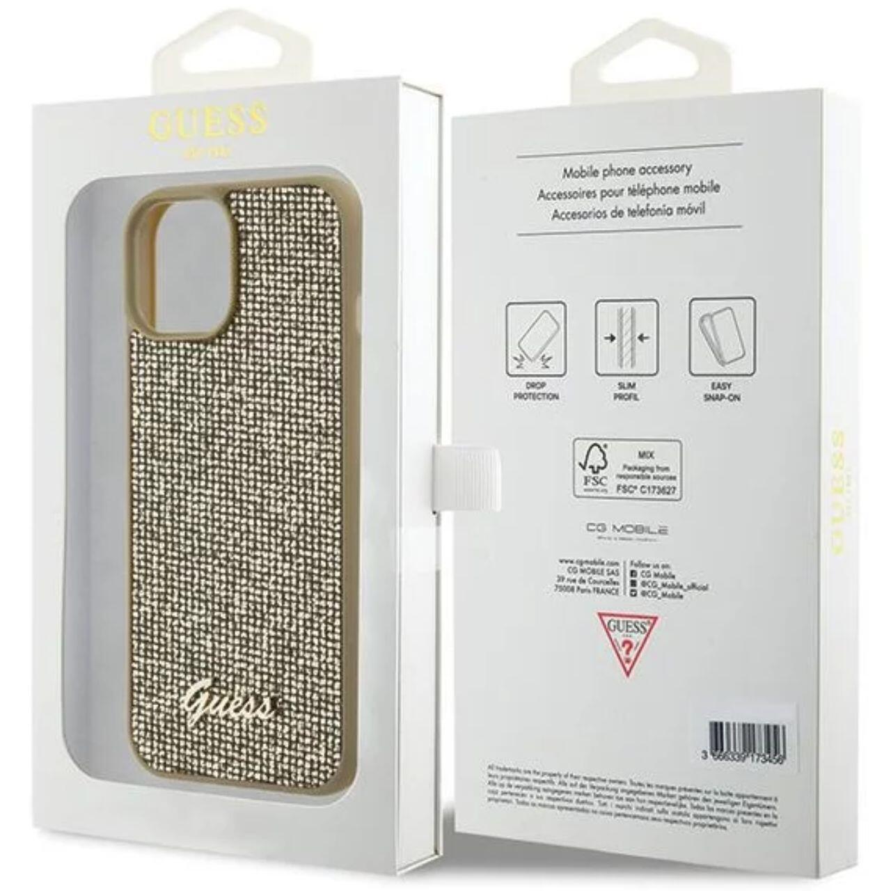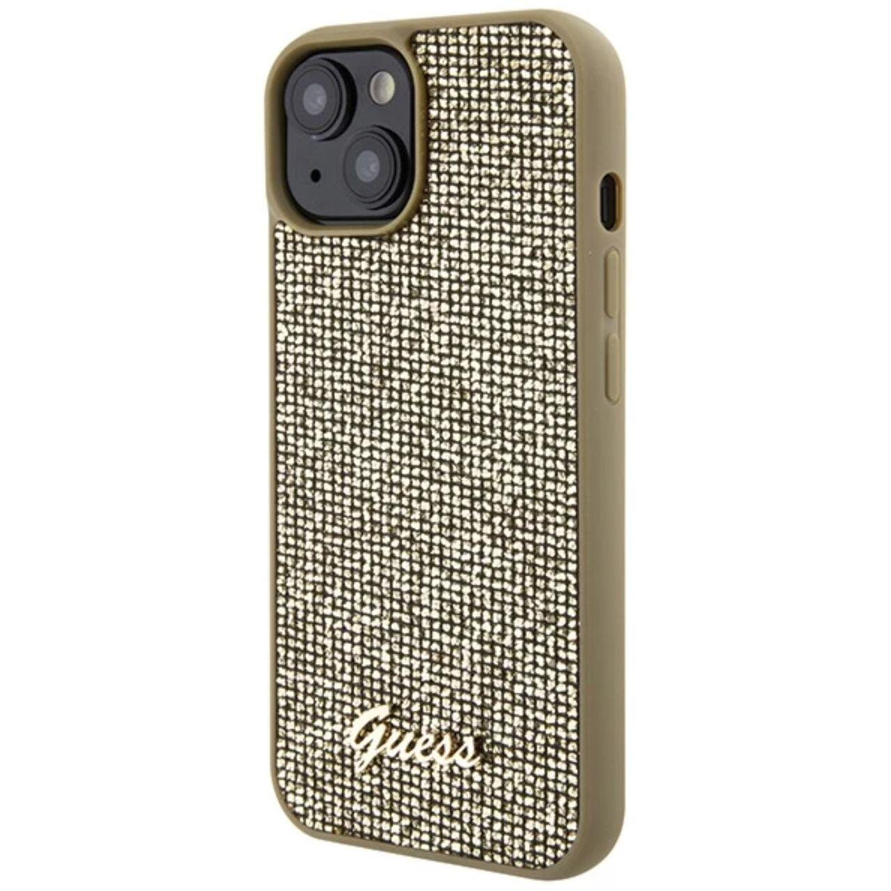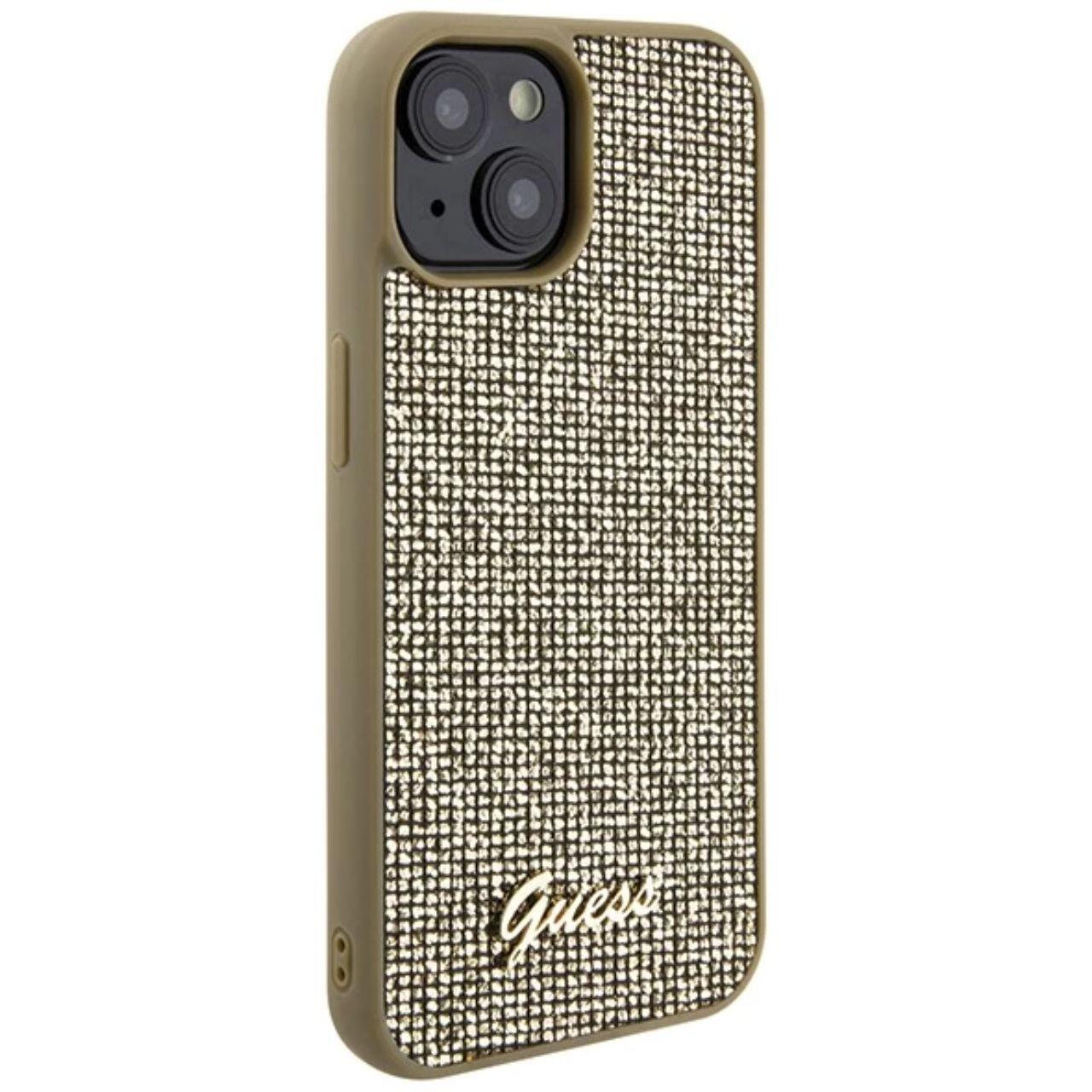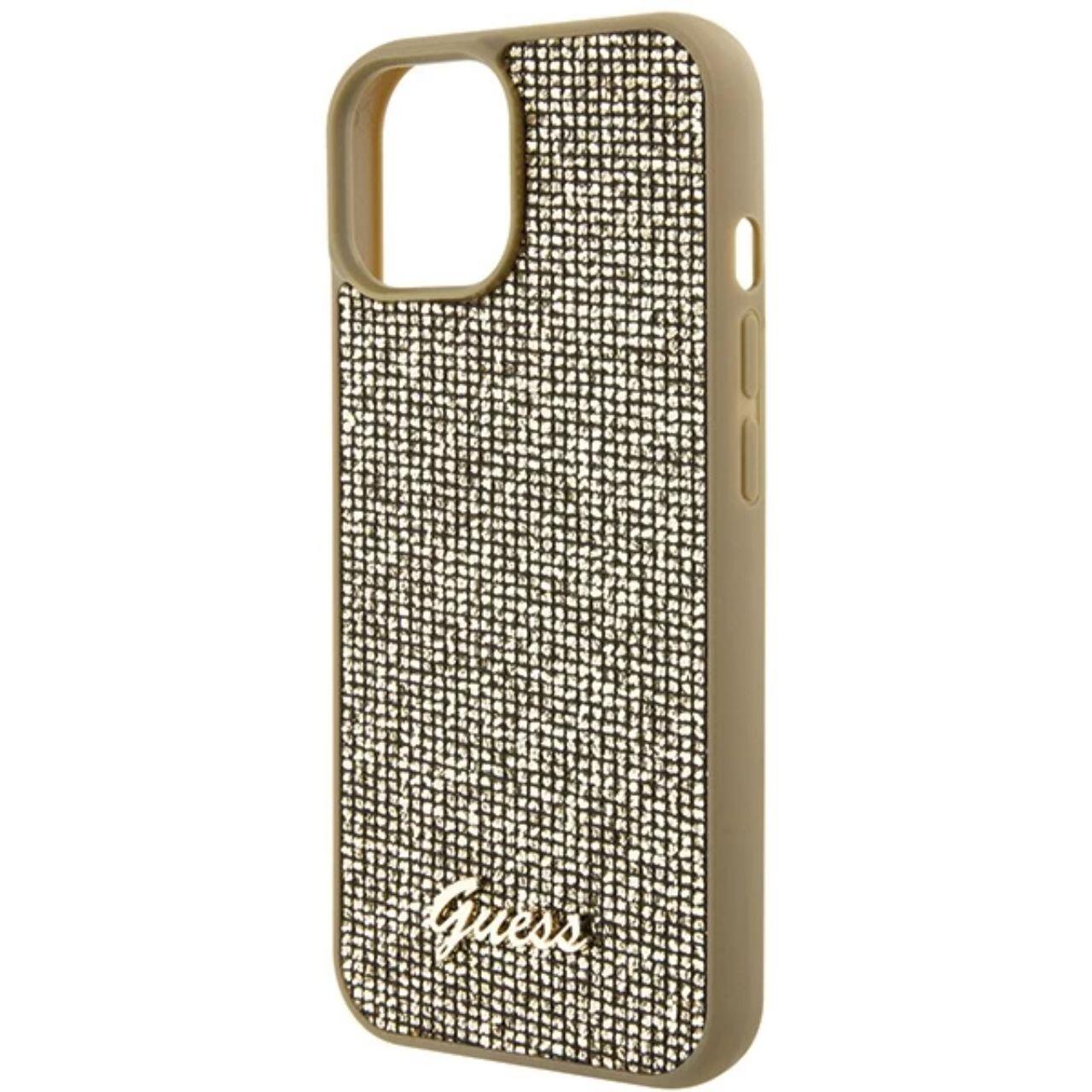 Guess Square Mirror Script Logo iPhone 15 Hoesje Goud