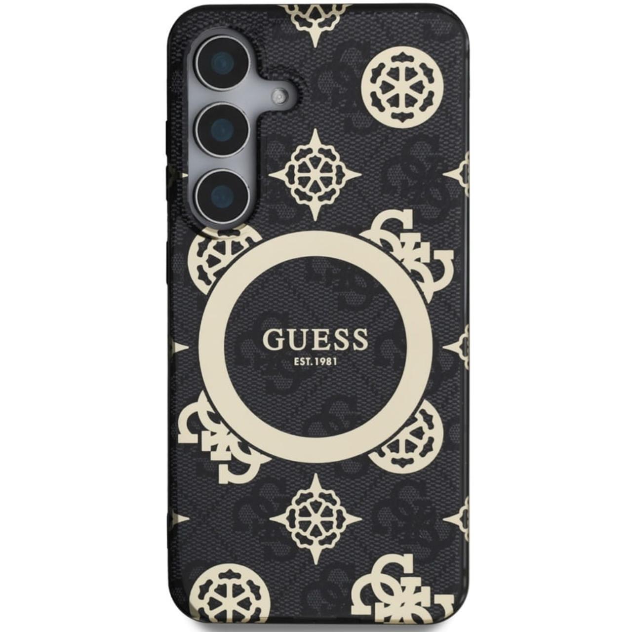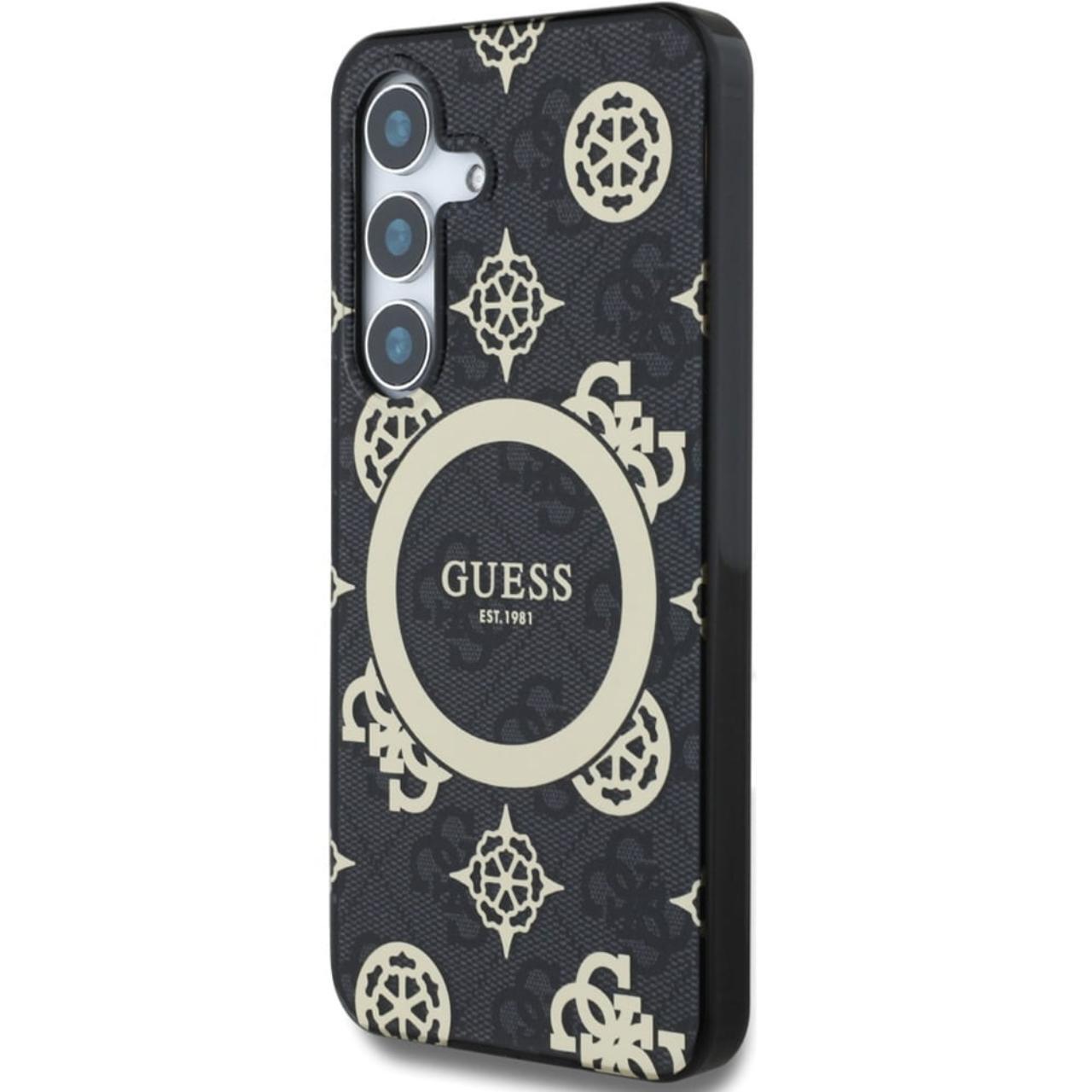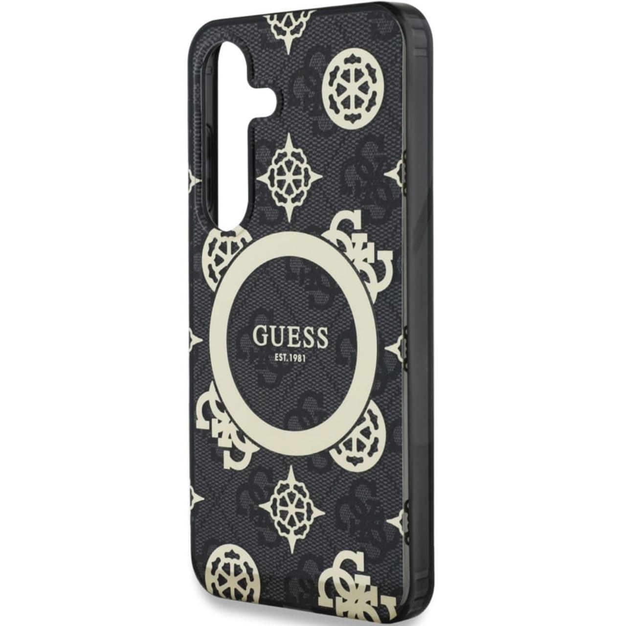 Guess Case 4G Goud Gegalvaniseerd Pioenpatroon Samsung Galaxy S25 Zwart