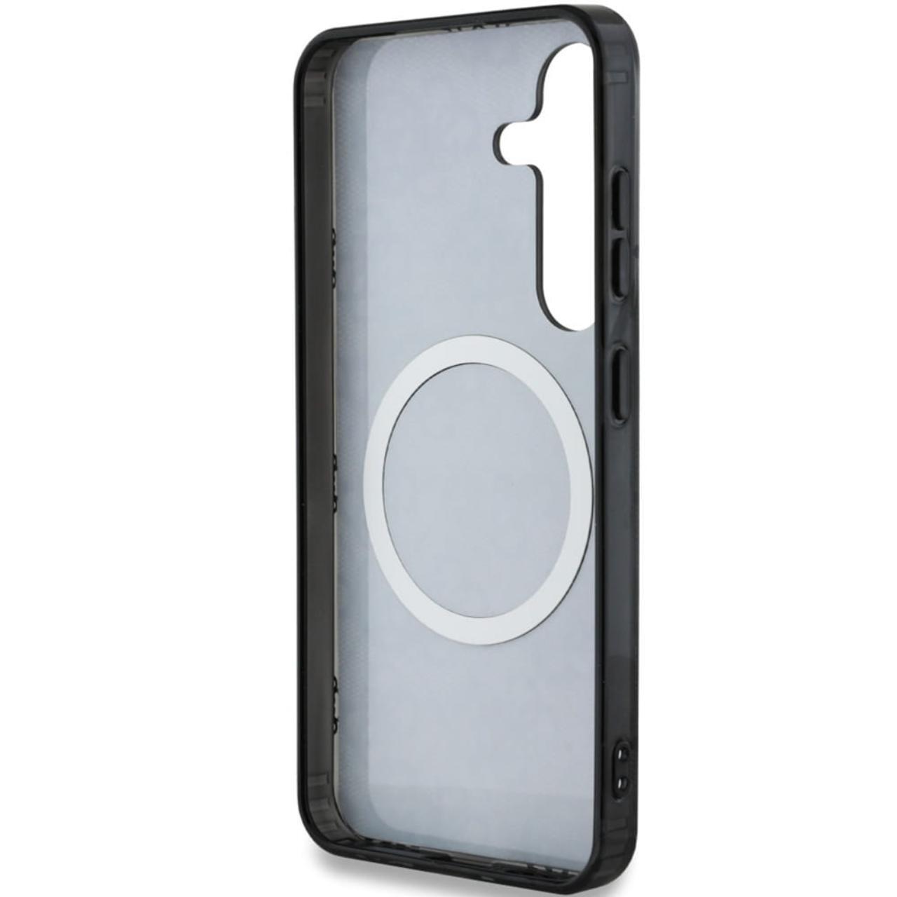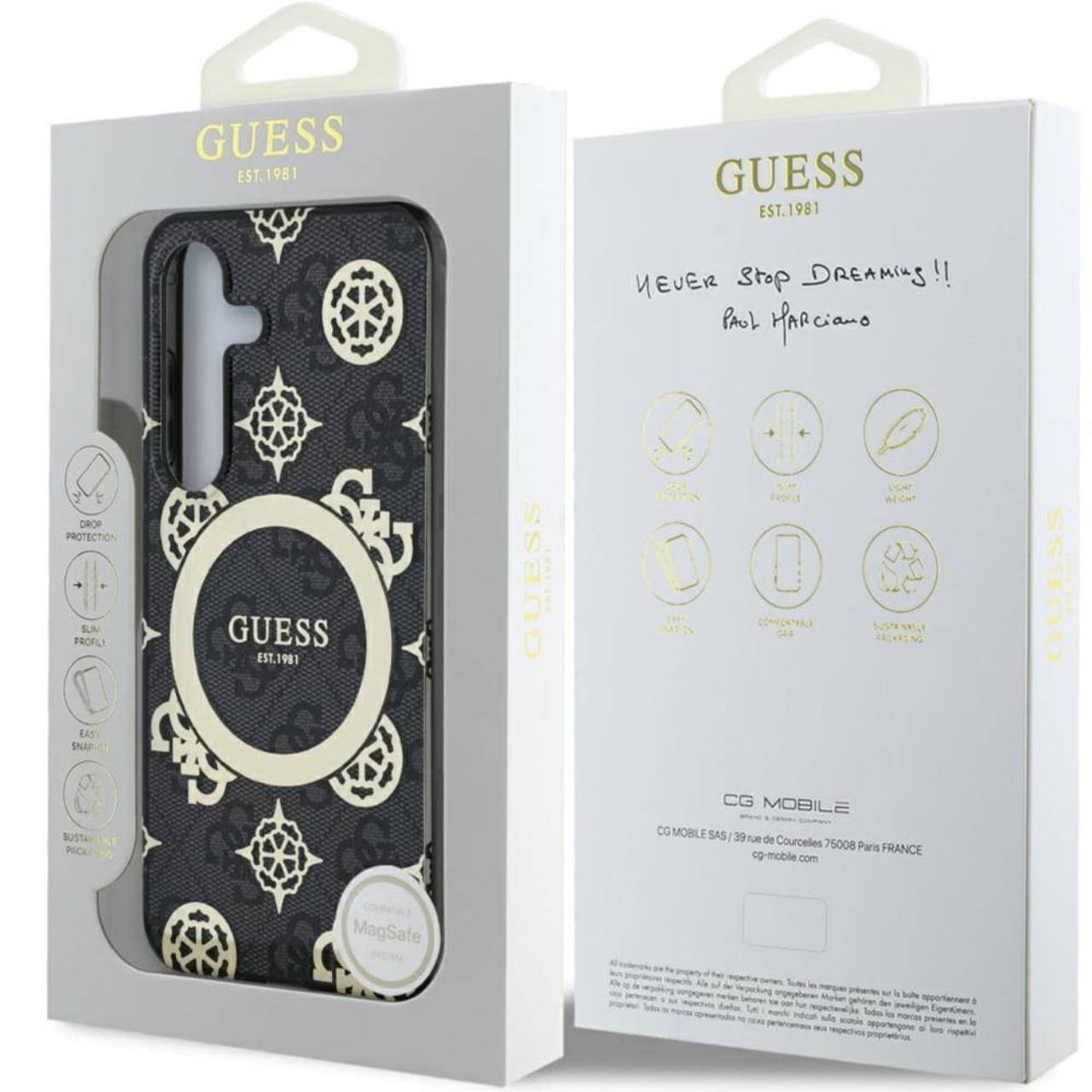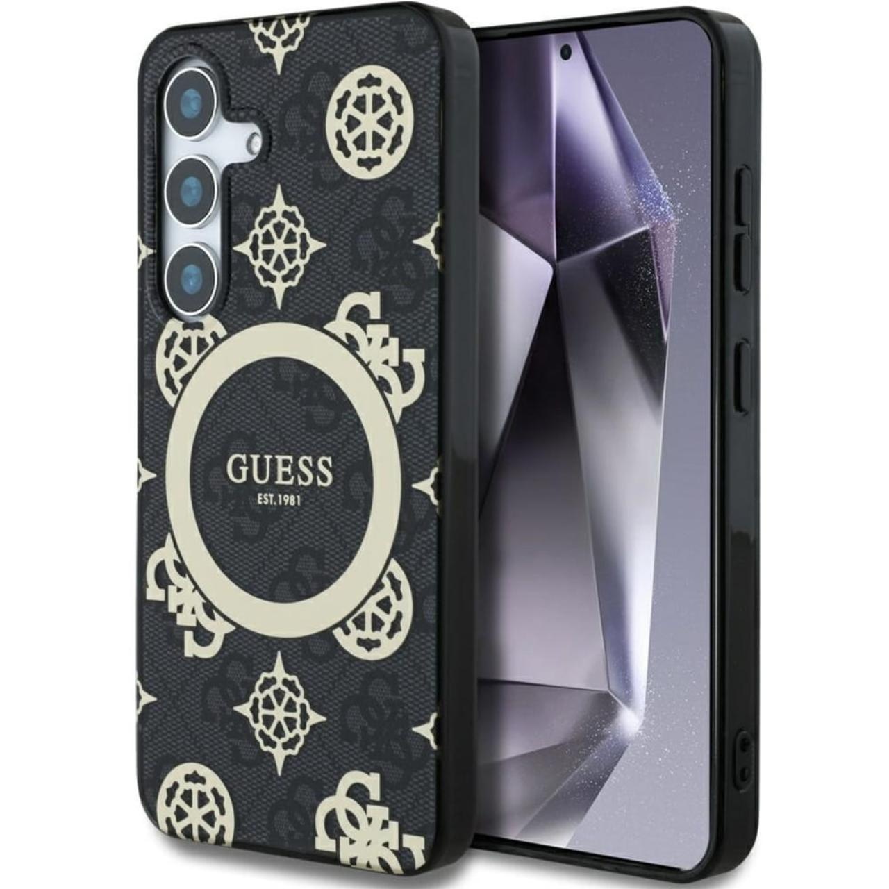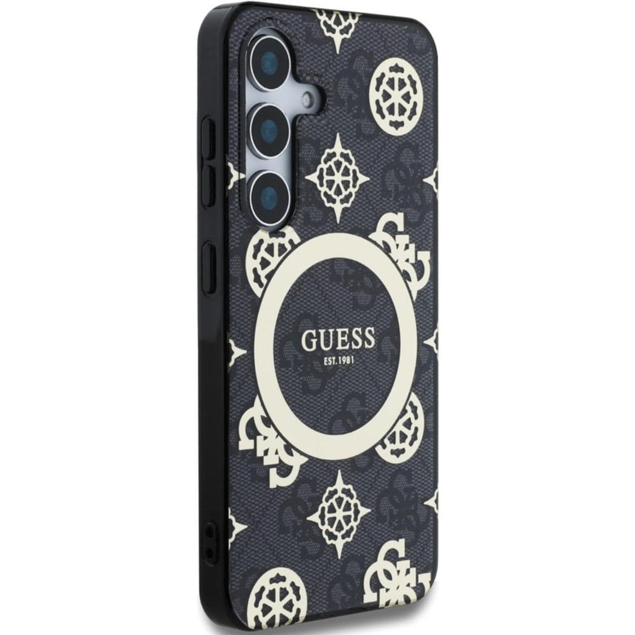 Guess Case 4G Goud Gegalvaniseerd Pioenpatroon Samsung Galaxy S25 Zwart
