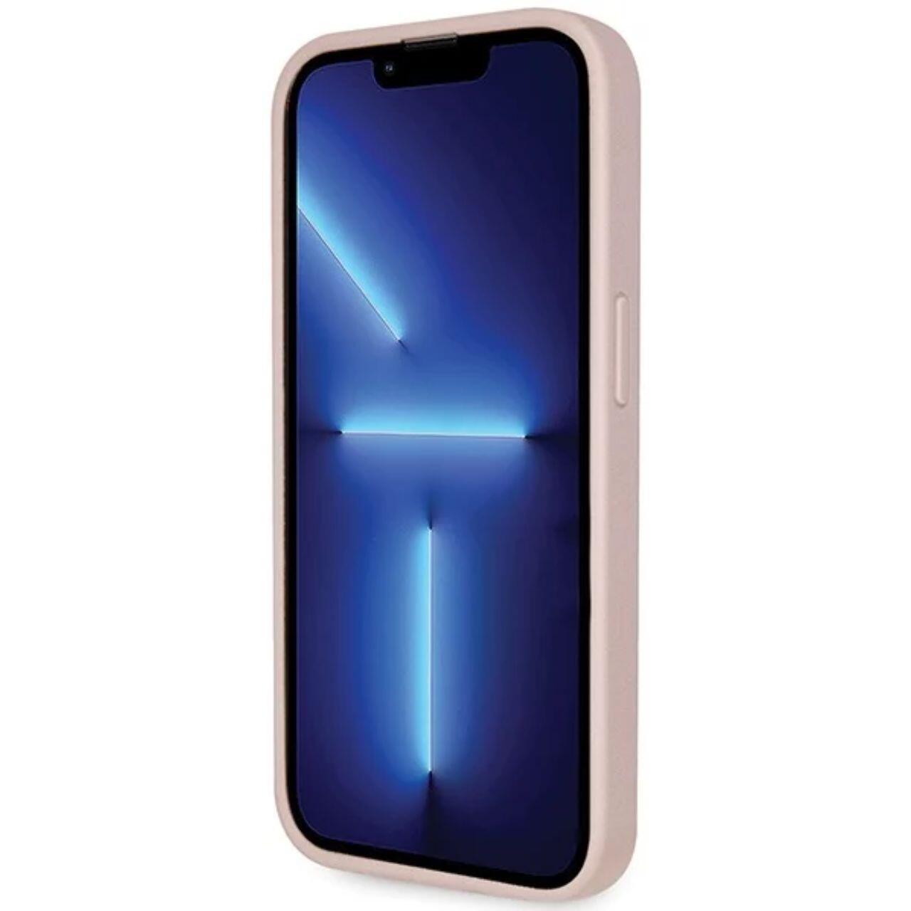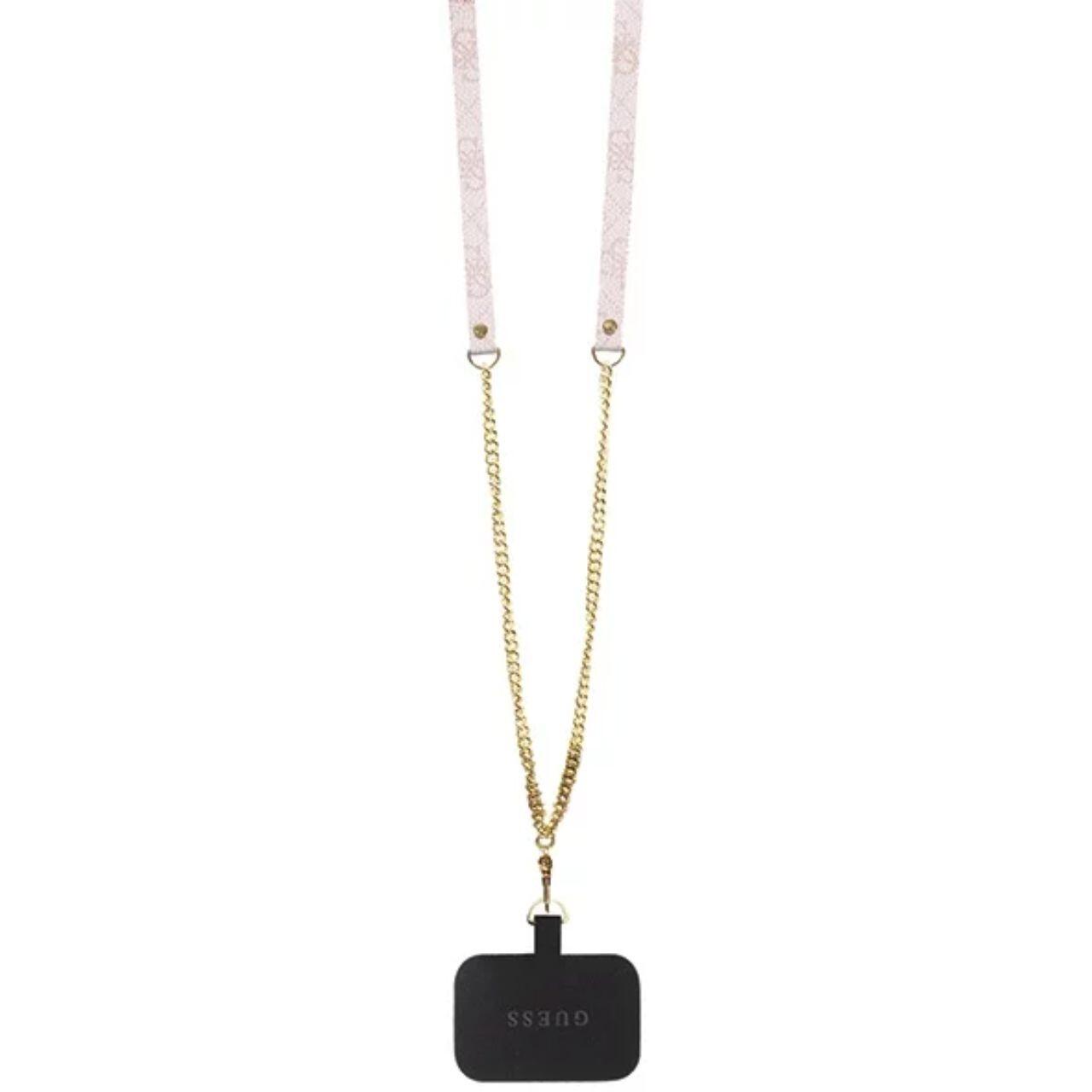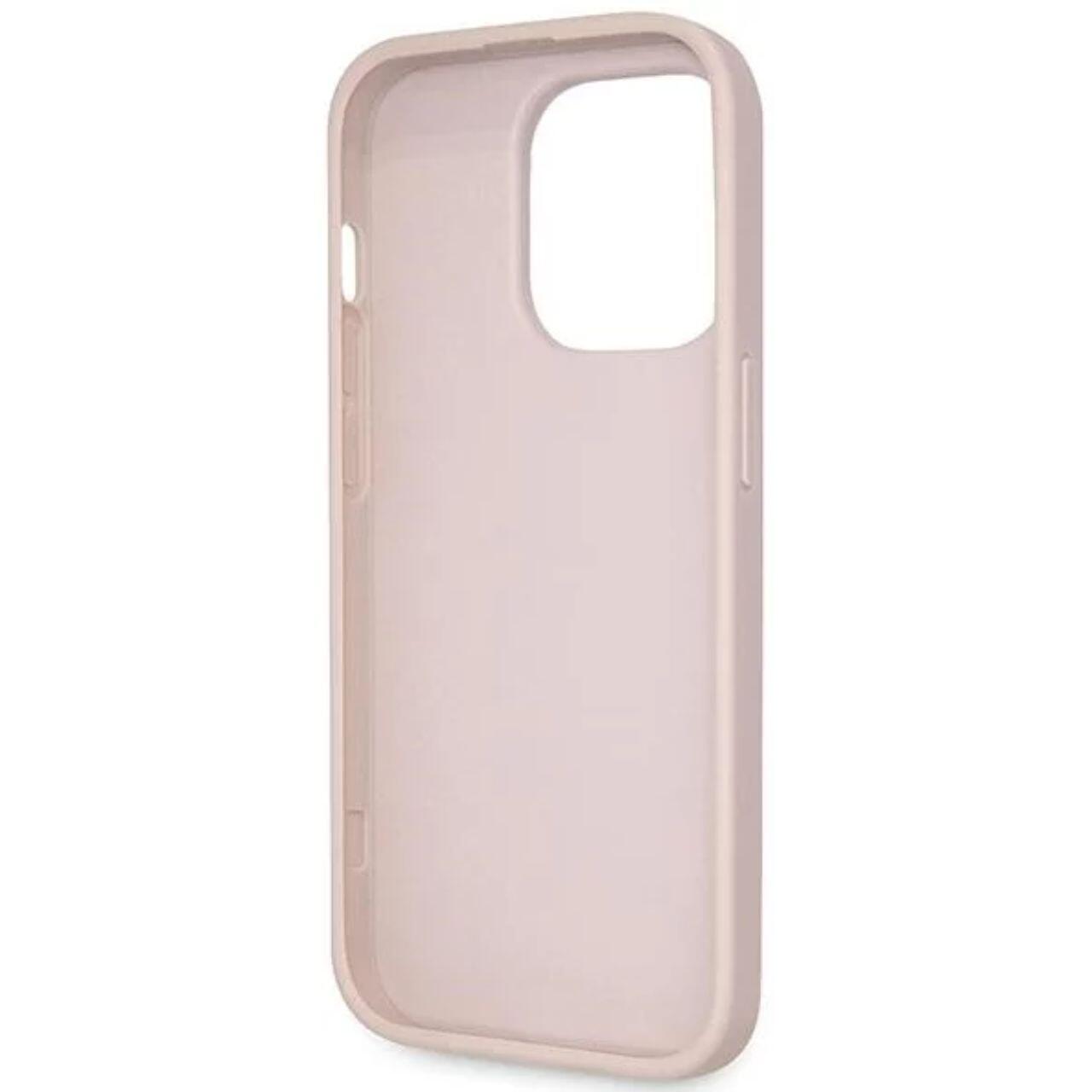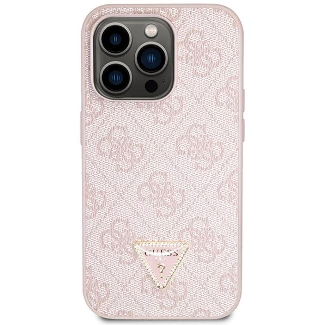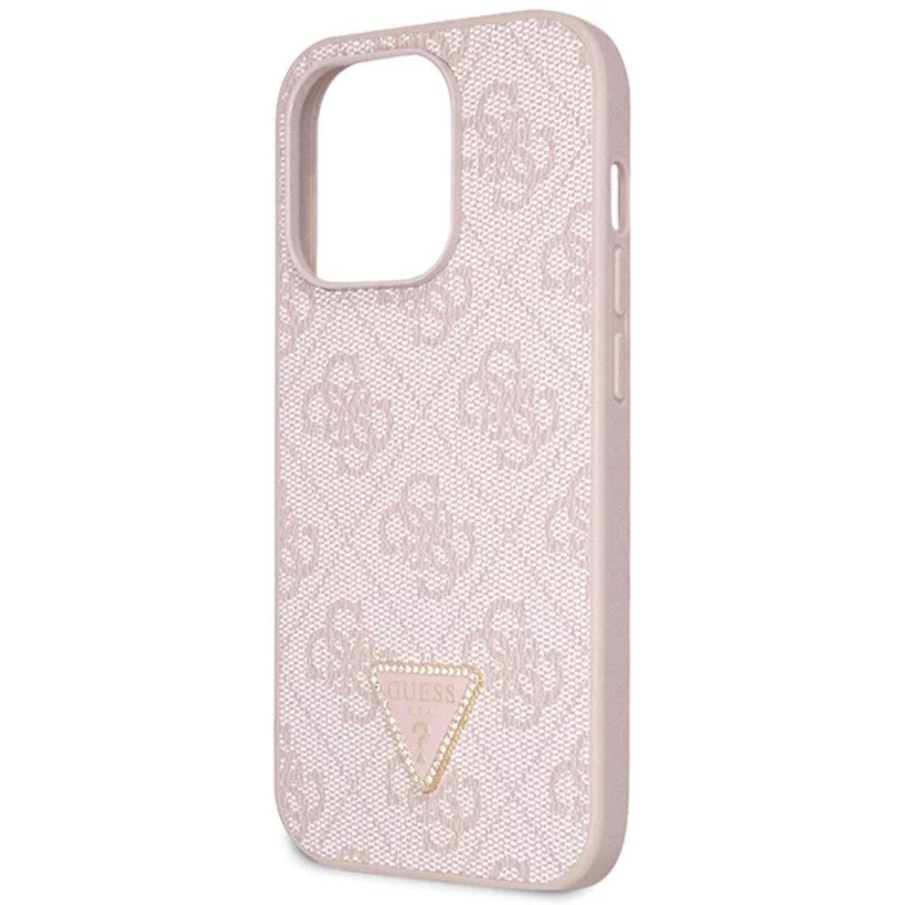 Guess PU 4G Strass Triangle Metal Logo Case met Crossbody Band iPhone 15 Pro Roze