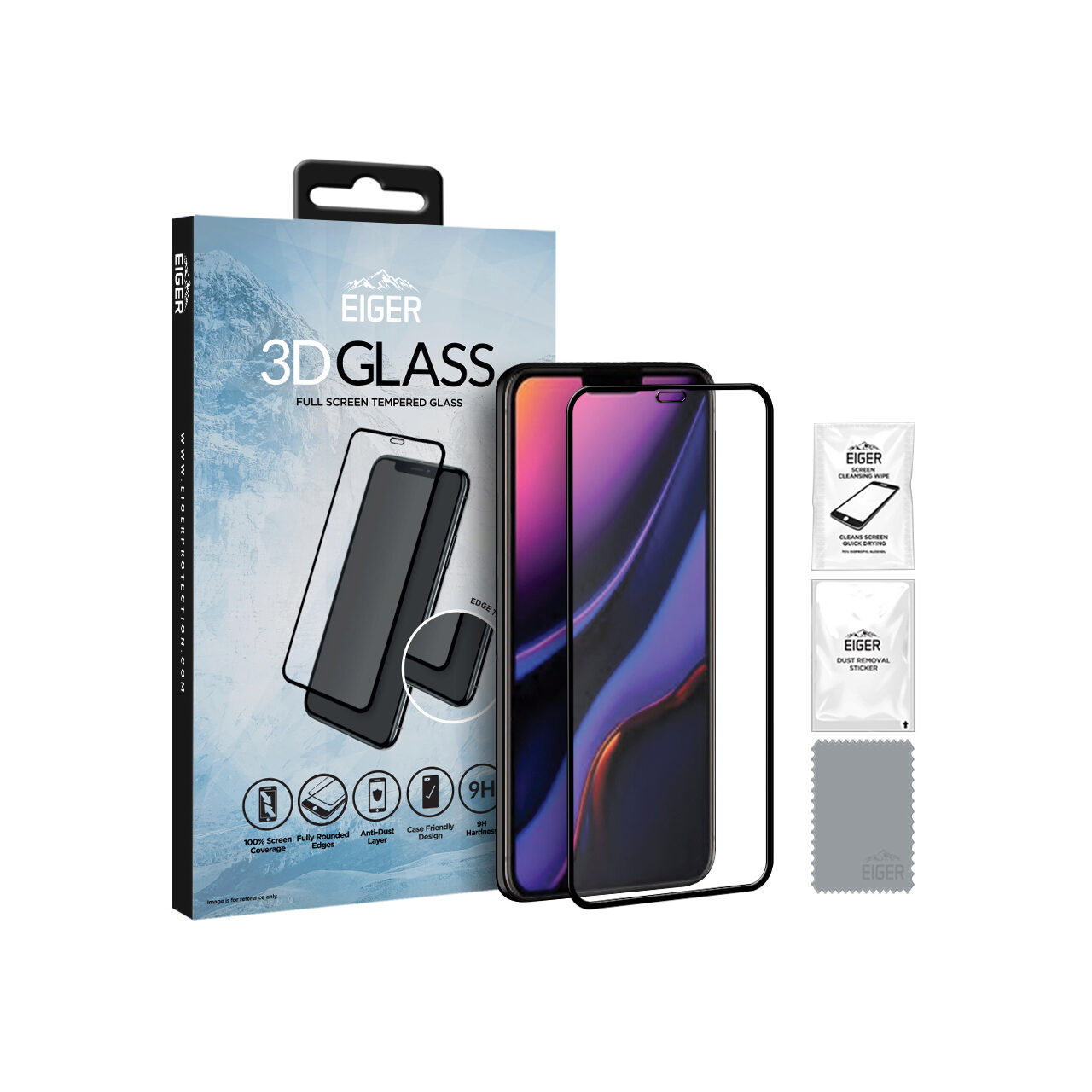 Eiger 3D gebogen glasfilm iPhone 11 Pro / XS / X Helder zwart (0,33 mm, 9H, oleofoob)