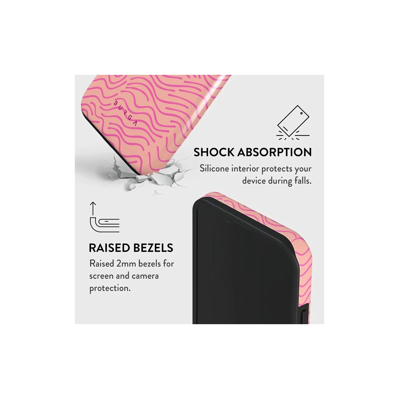 Het Secret Spot iPhone 14 hoesje van Burga is uniek ontworpen met een dubbellaagse hybride structuur. Siliconen TPU-binnenlaag en een stevige pc-buitenlaag van militaire kwaliteit bieden schokabsorptie, duurzaamheid en robuuste bescherming tegen krassen, terwijl verhoogde randen van 2 mm scherm- en camerabescherming bieden.