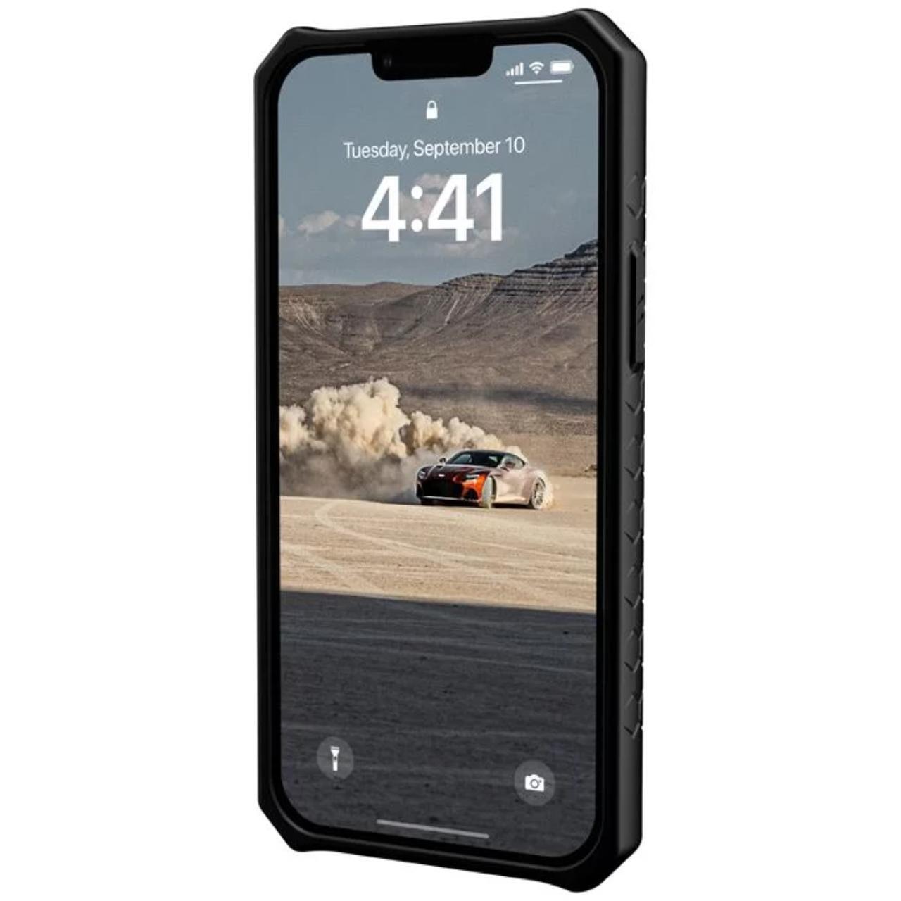 Monarch Series-hoesje voor iPhone 14 van UAG combineert 5 soorten materialen in een eersteklas bescherming die bestand is tegen vallen en krassen. De randen en het interieur zijn gemaakt van flexibel rubber en de hoeken zijn gemarkeerd en versterkt om schokken met succes te absorberen. Aan de achterkant is het versterkt met een hard plastic deksel (polycarbonaat) in reliëf dat een ander deksel van premium koolstofvezel onthult, die allemaal stevig zijn bevestigd met behulp van schroeven van een metaallegering. Voldoet aan de militaire valgeteste MIL STD 810G 516.6-beschermingsnormen tegen schokken en waterdruppels.