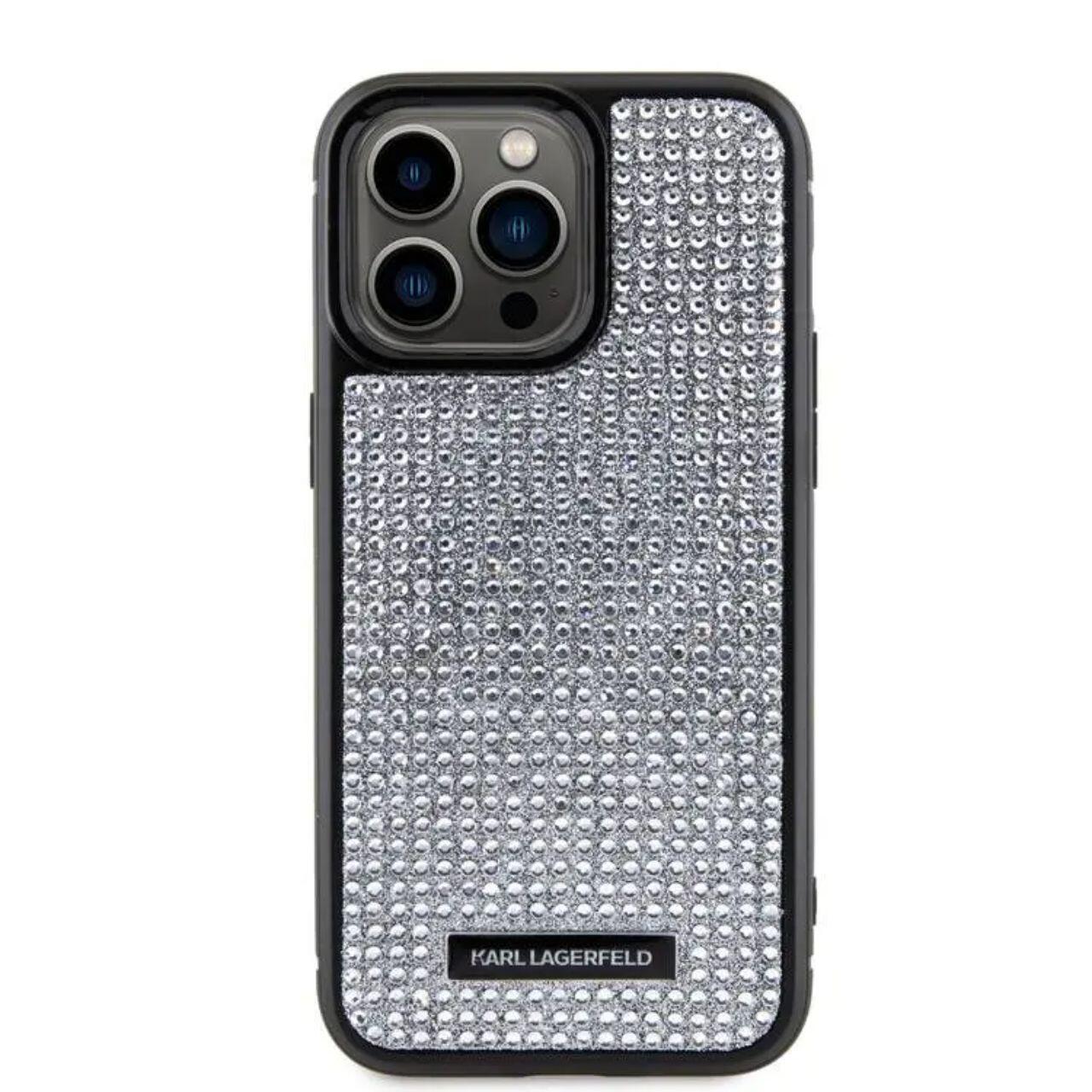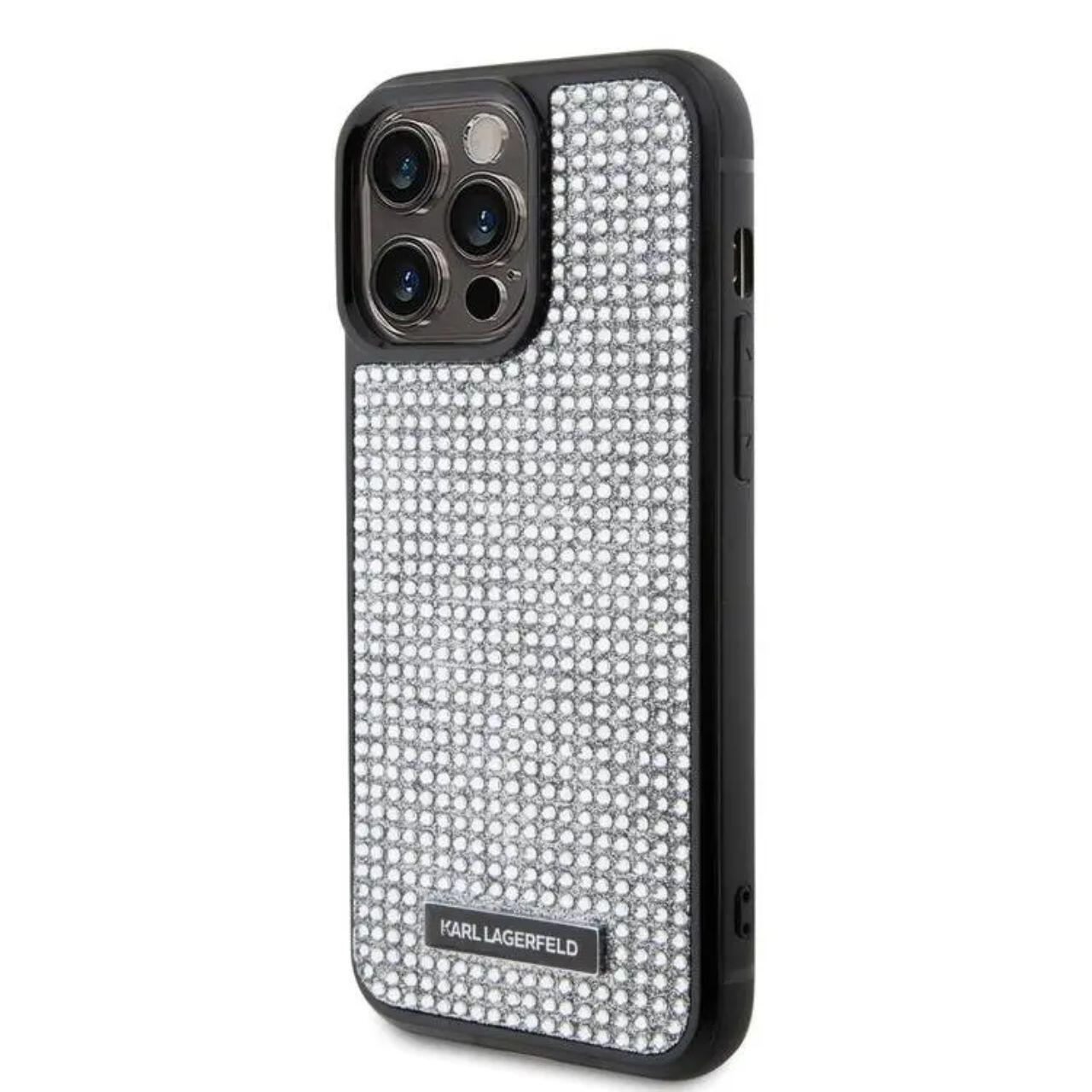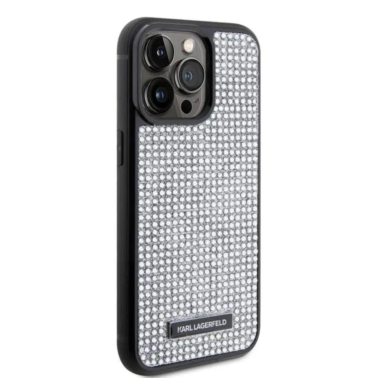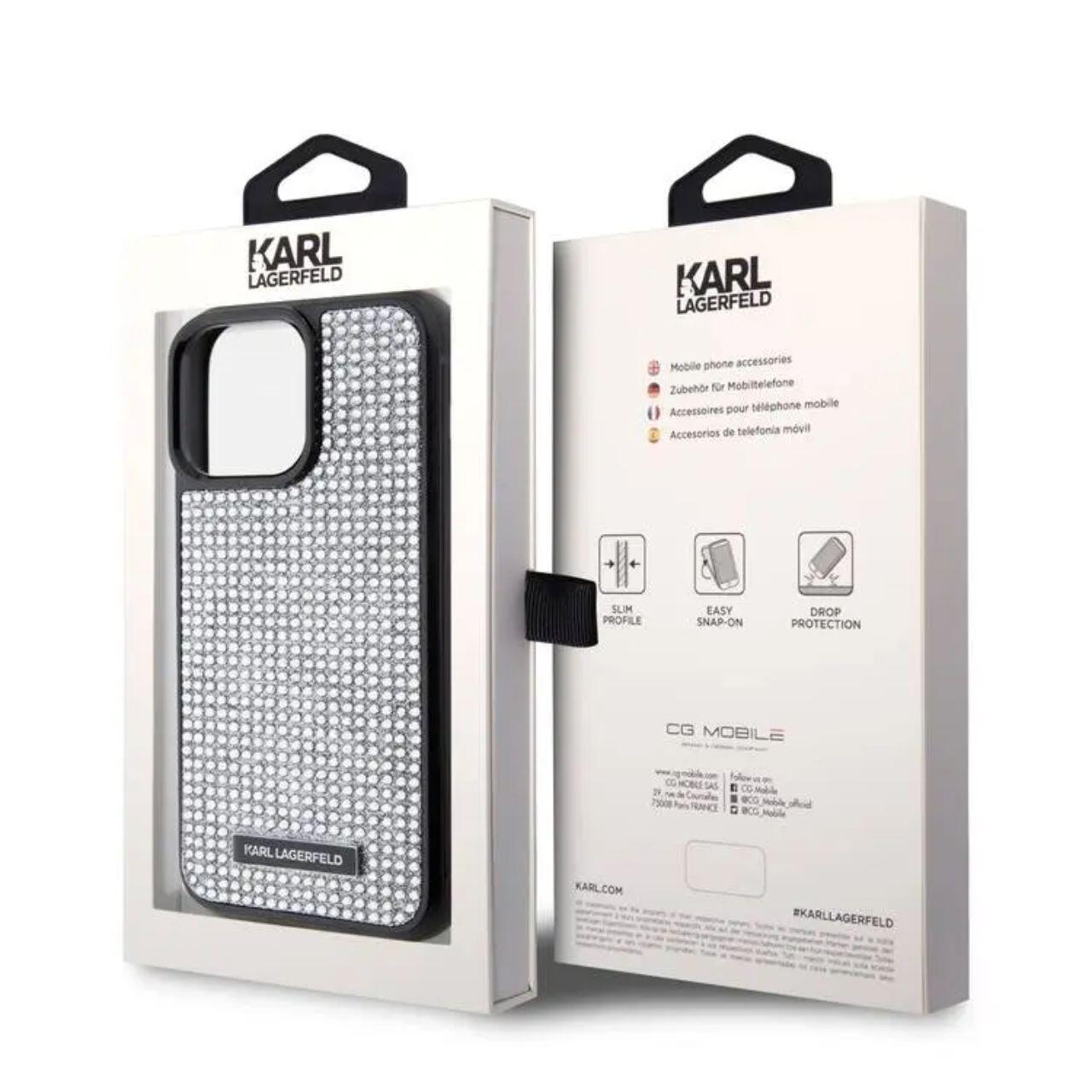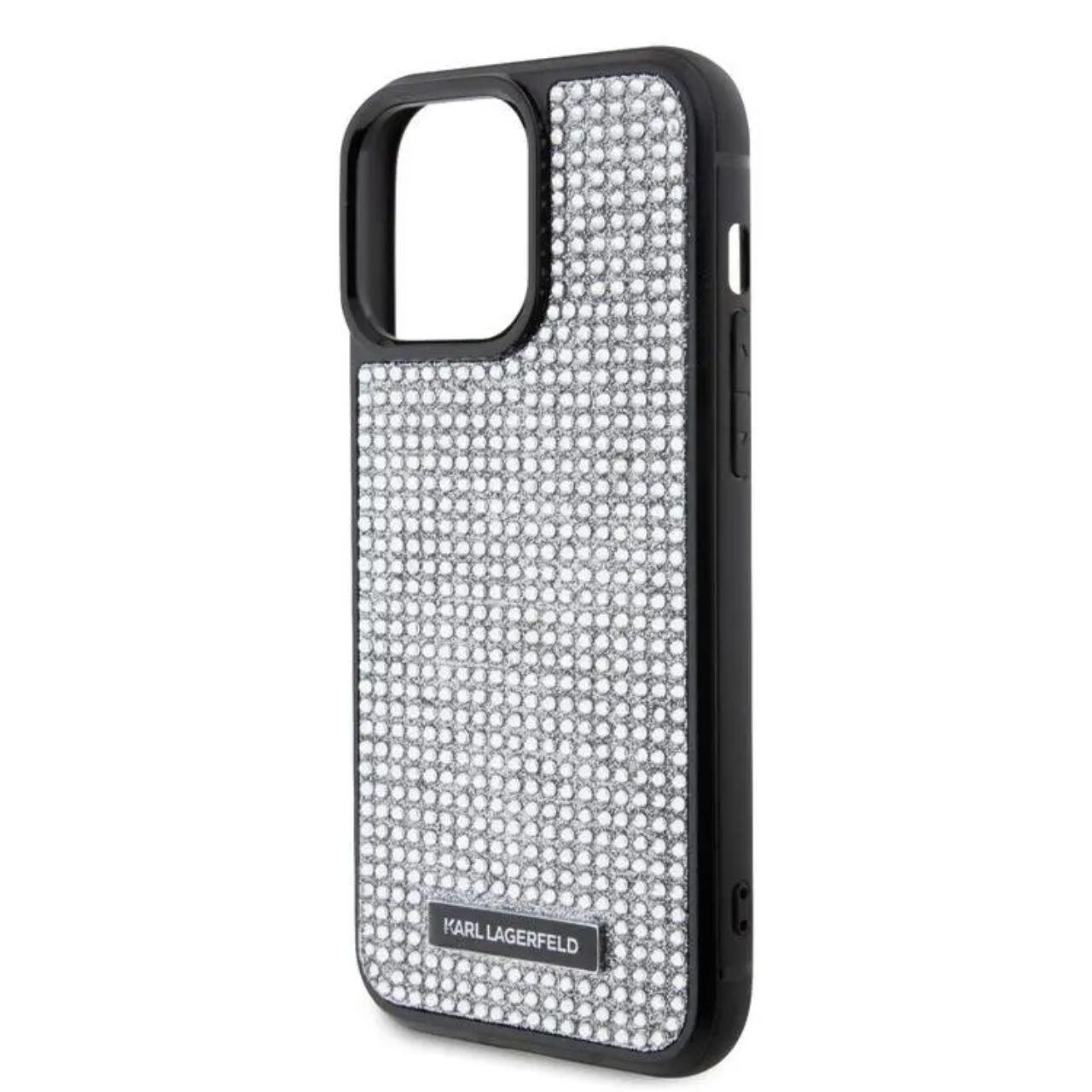 Karl Lagerfeld Husa Rhinestone Plate Metal Logo 15 Pro Silver