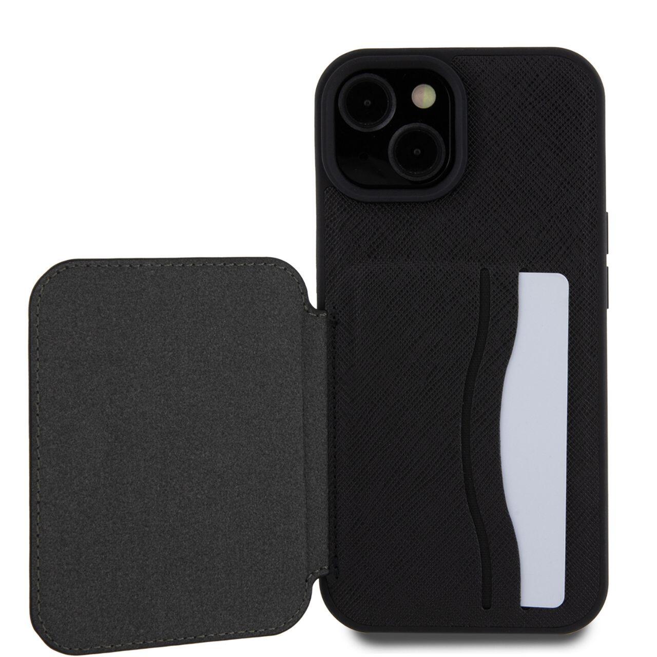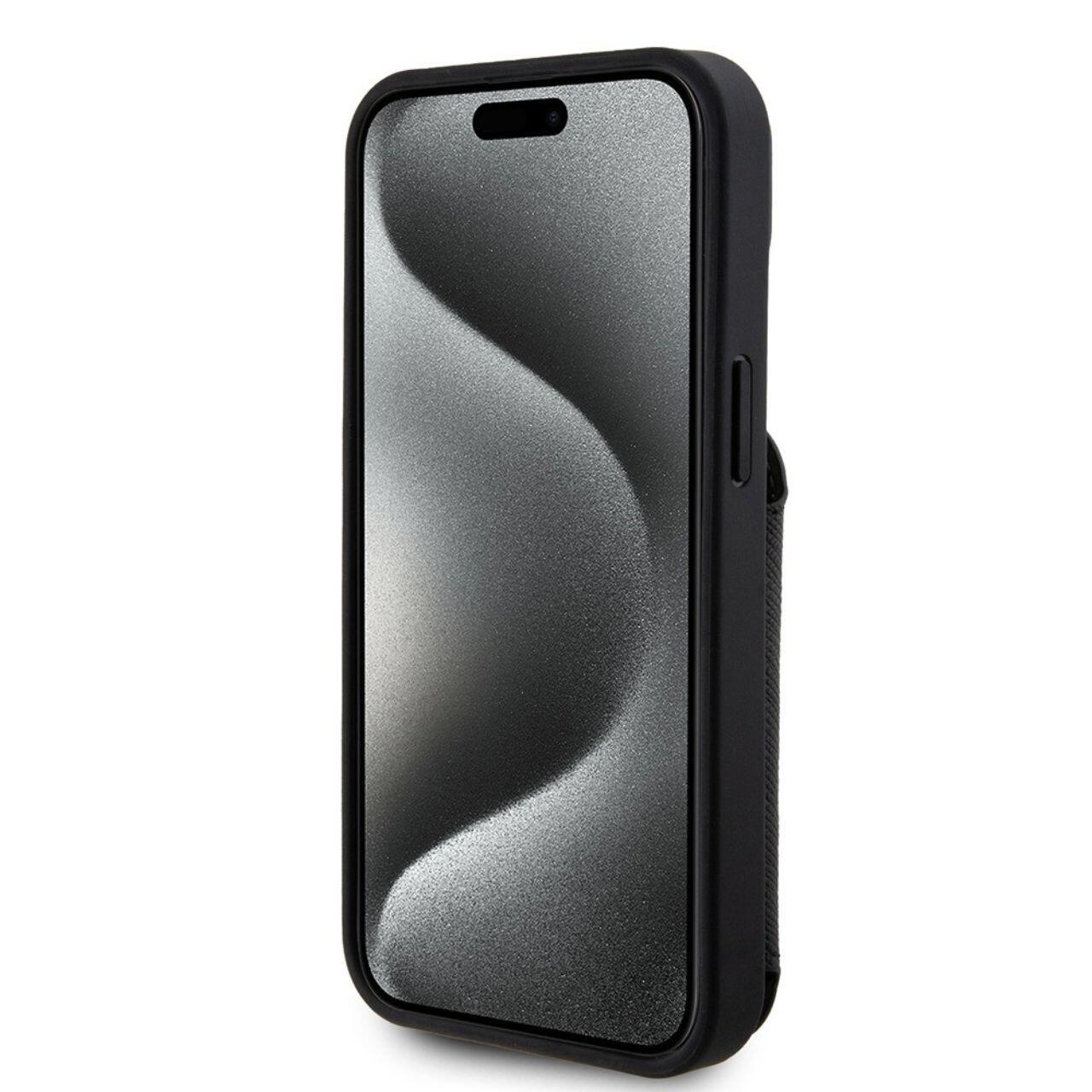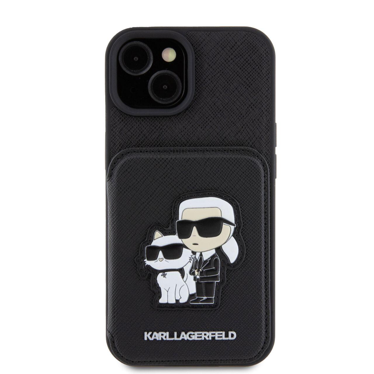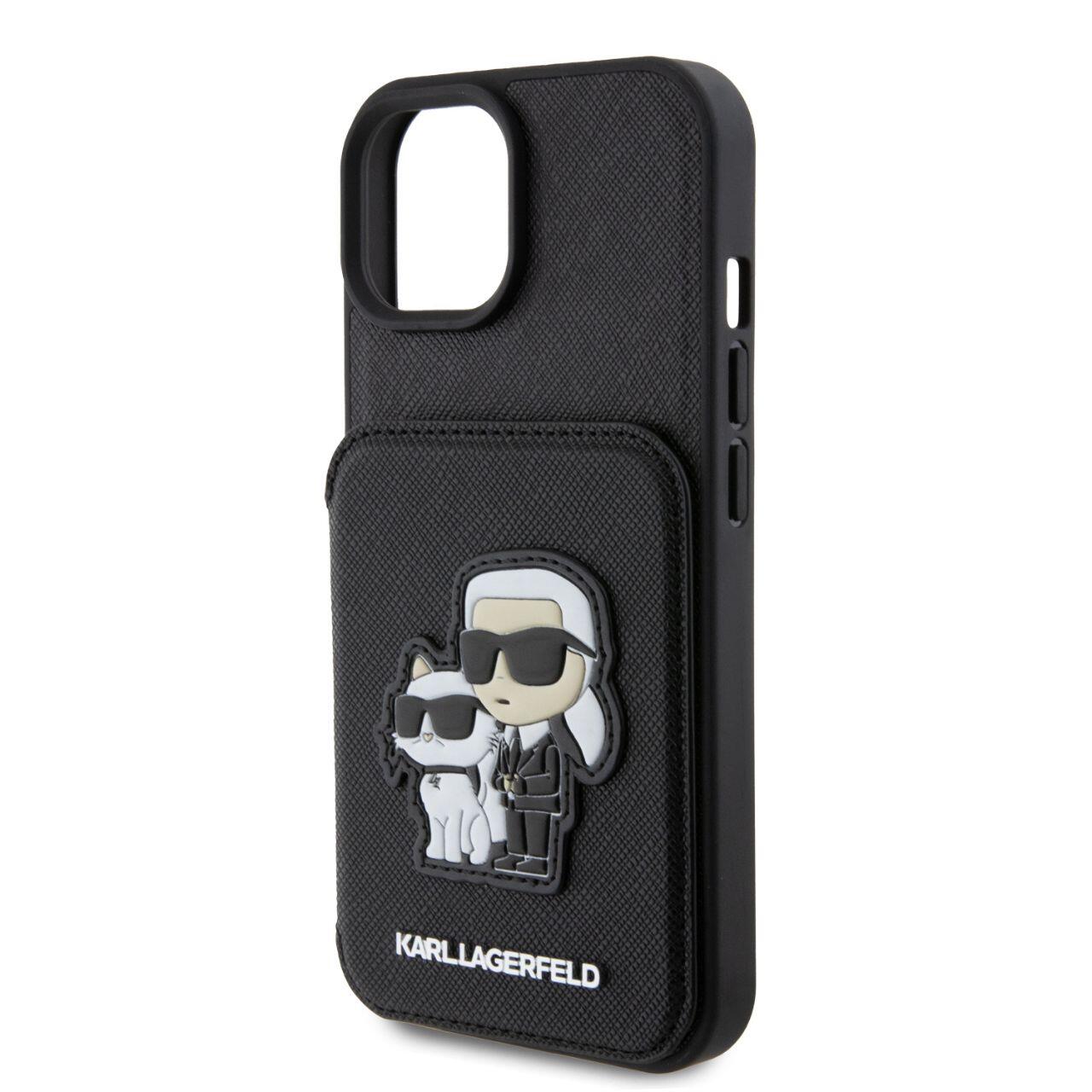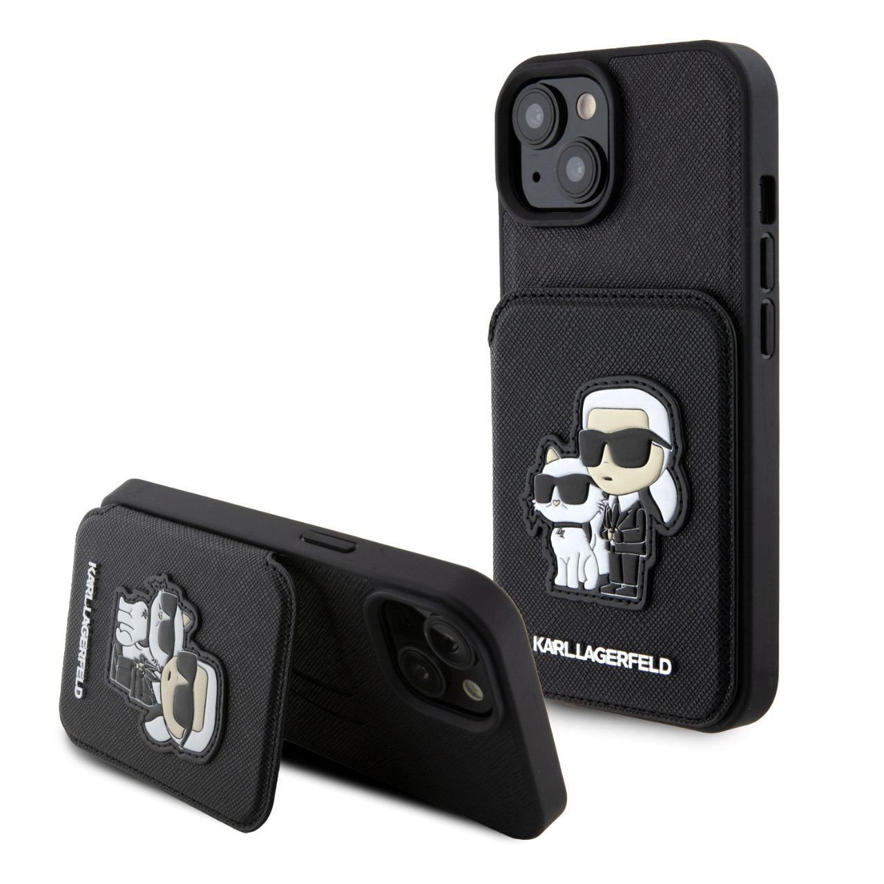 Karl Lagerfeld Saffiano Case Kaartsleufstandaard Karl&Choupette iPhone 15 Zwart