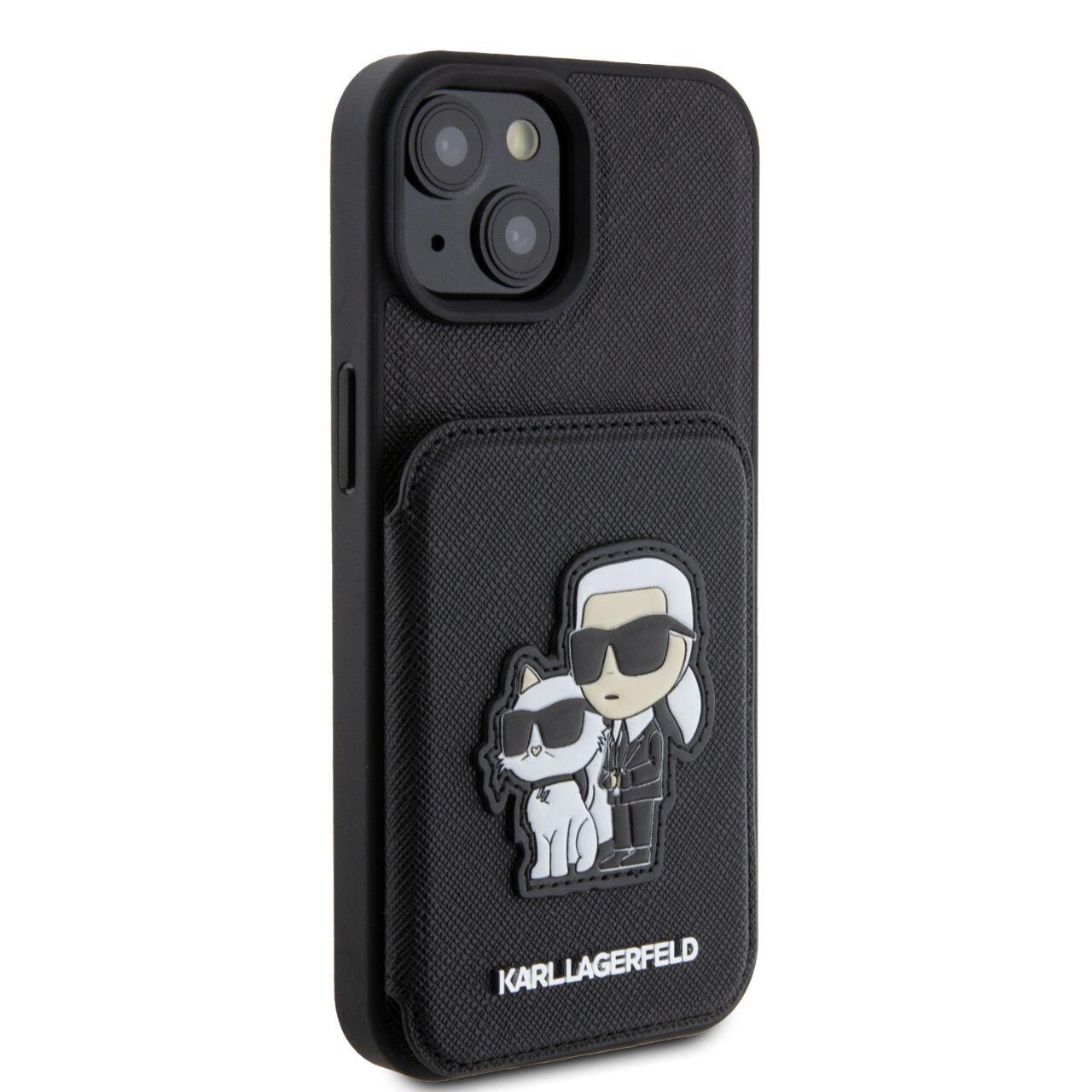 Karl Lagerfeld Husa Saffiano Card Slot Stand Karl & amp; Choupette iPhone 15 Black