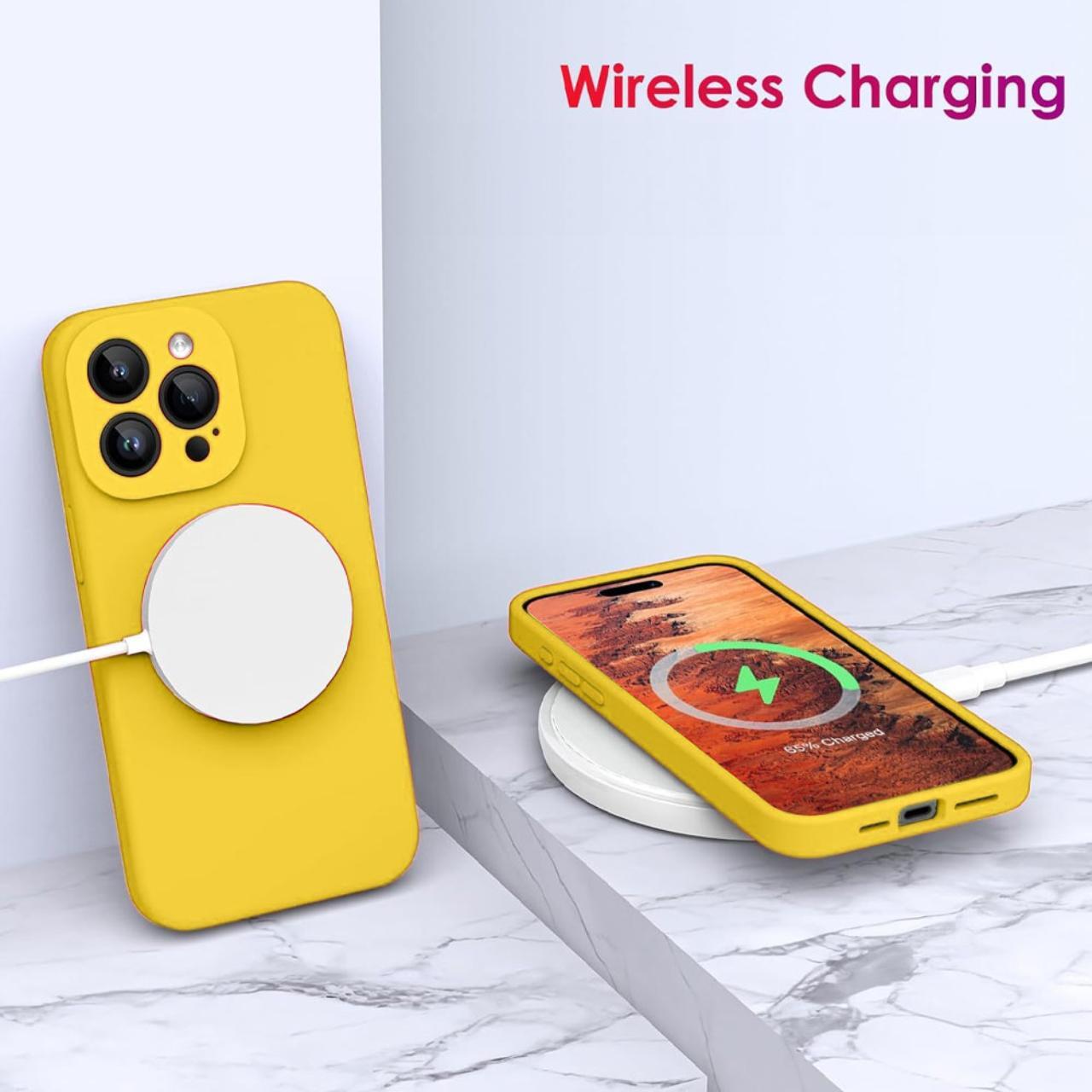 Lemontti Case Liquid Silicon MagCharge iPhone 15 Pro Geel (360° bescherming, fijn materiaal, gevoerd met microvezel)