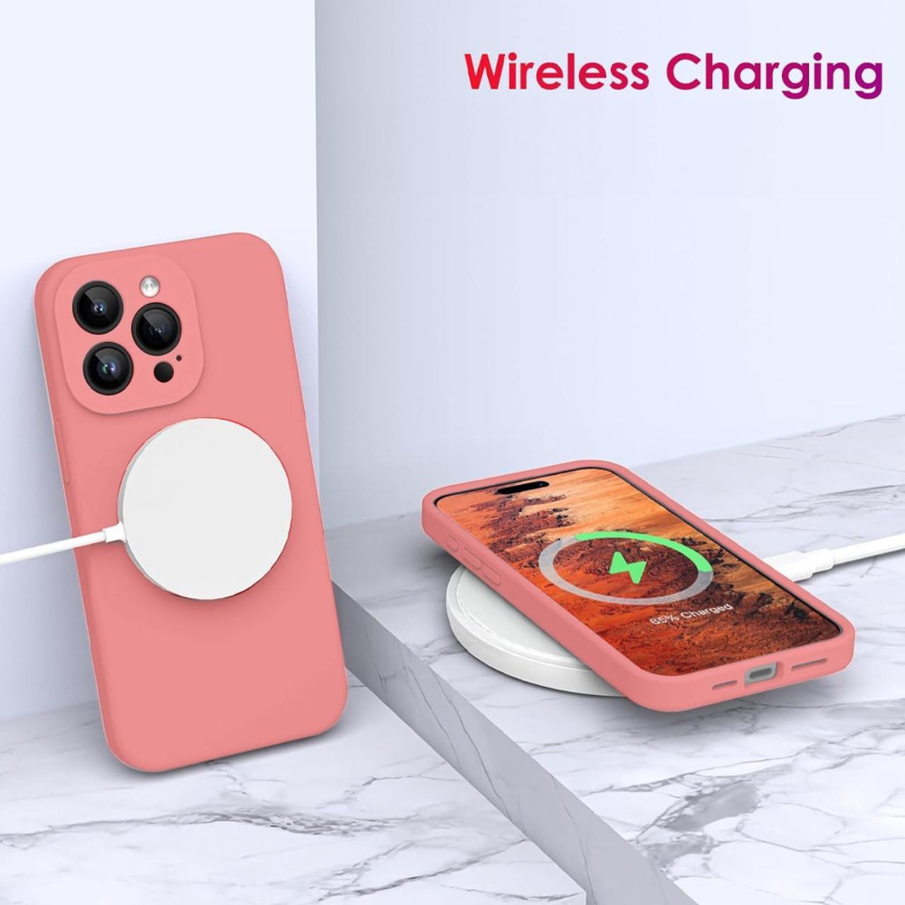Lemontti Case Liquid Silicon MagCharge iPhone 15 Pro Max Roze (360° bescherming, fijn materiaal, gevoerd met microvezel)