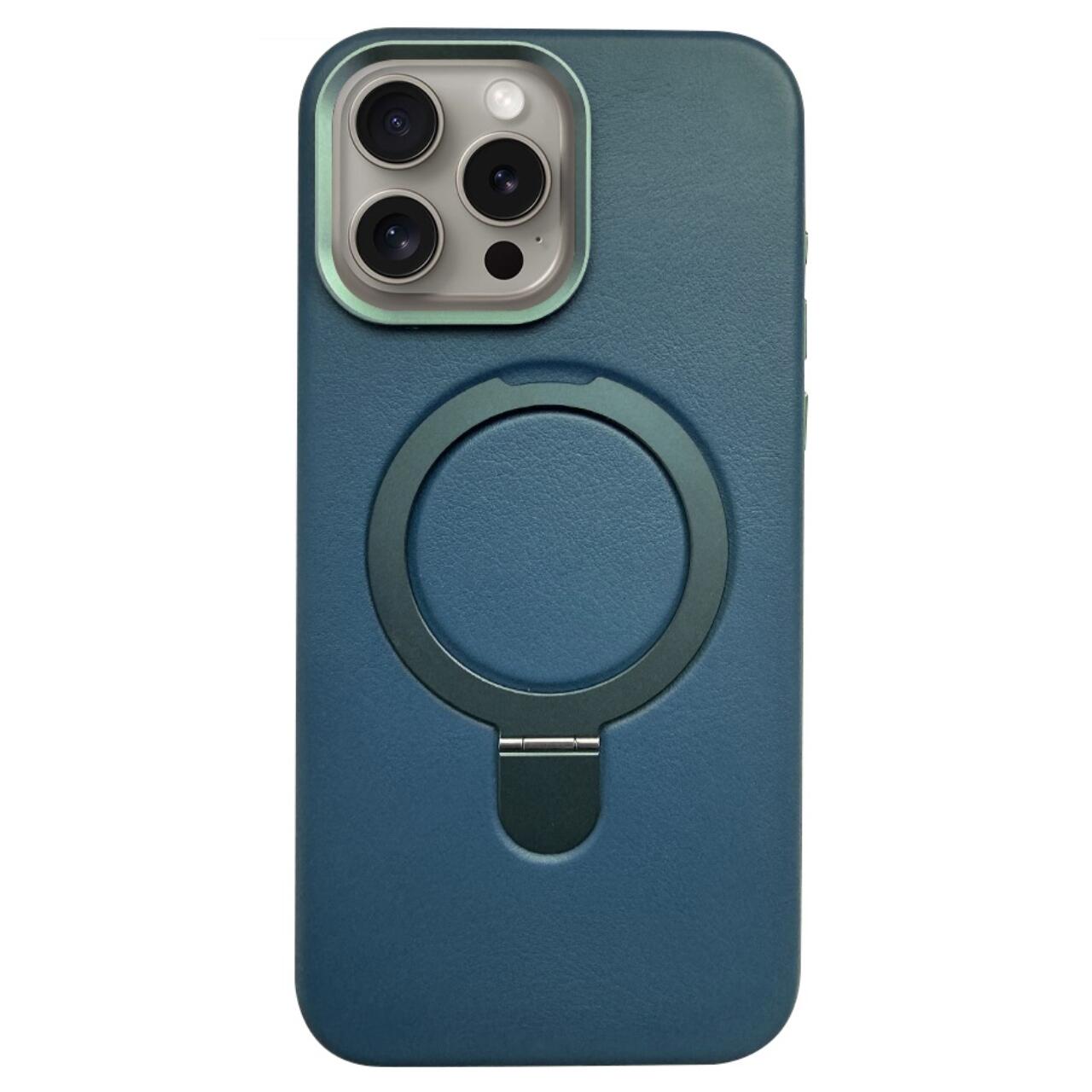 Lemontti MagSafe leren hoesje met standaard ring iPhone 15 Pro Max Groen