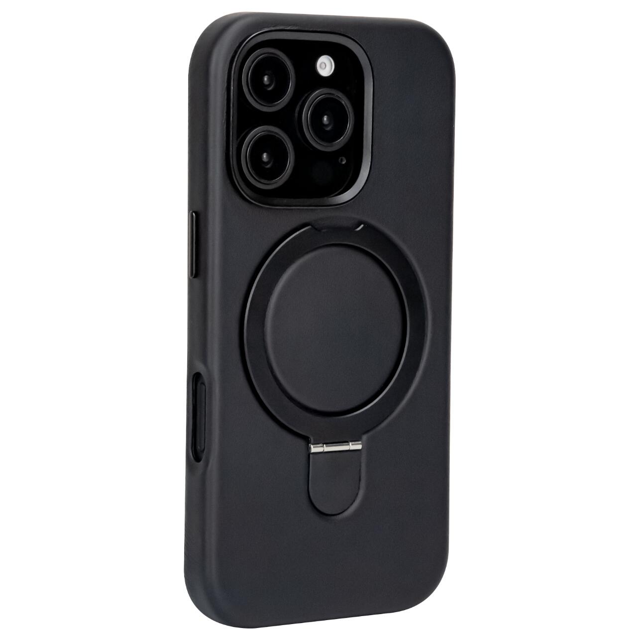 Lemontti MagSafe leren hoesje met stand ring iPhone 15 Pro Max zwart