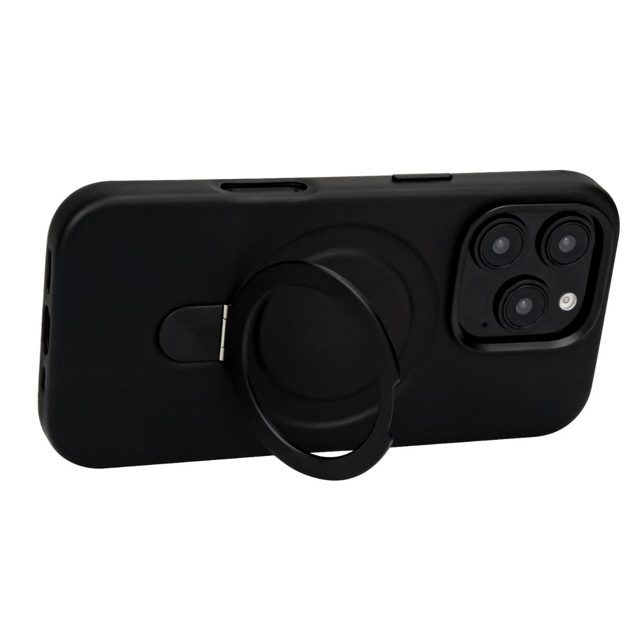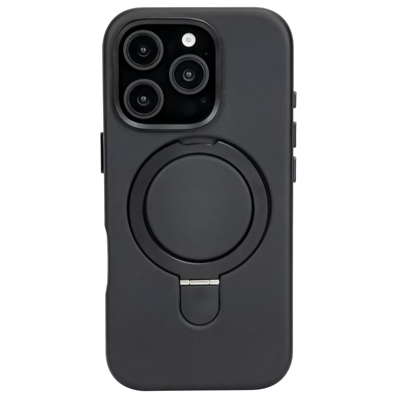 Lemontti MagSafe leren hoesje met stand ring iPhone 16 Pro zwart