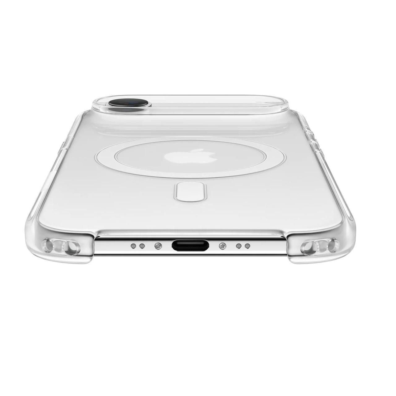 Het originele MagSafe iPhone Air-hoesje van Apple is doorschijnend, ultradun en ontworpen om het opvallend slanke ontwerp van de iPhone Air te complementeren. De achterkant is slechts 0,9 mm dik en is verstevigd met een polycarbonaat frame. De binnenkant heeft een discrete matte afwerking en de buitenkant is glanzend en onberispelijk afgewerkt.