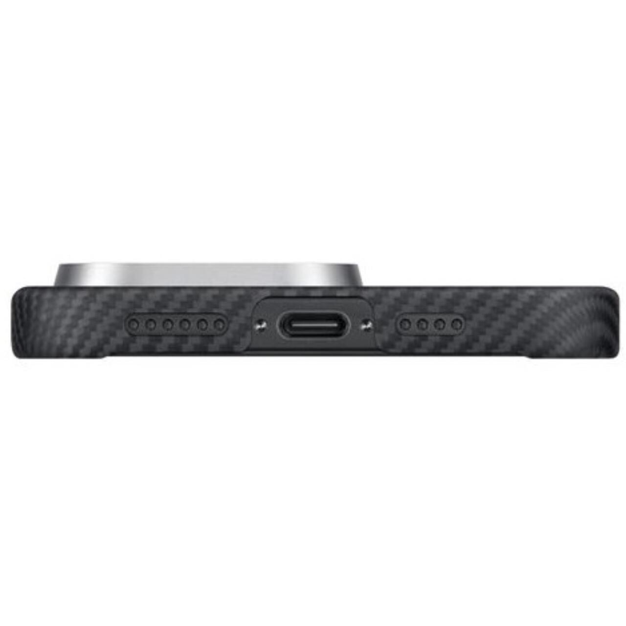 Het Ultra-Slim Aramid Magsafe iPhone 16 Pro hoesje van Pitaka is gemaakt van duurzaam, gestructureerd antislipmateriaal dat de telefoon beschermt tegen stoten en dagelijkse slijtage.