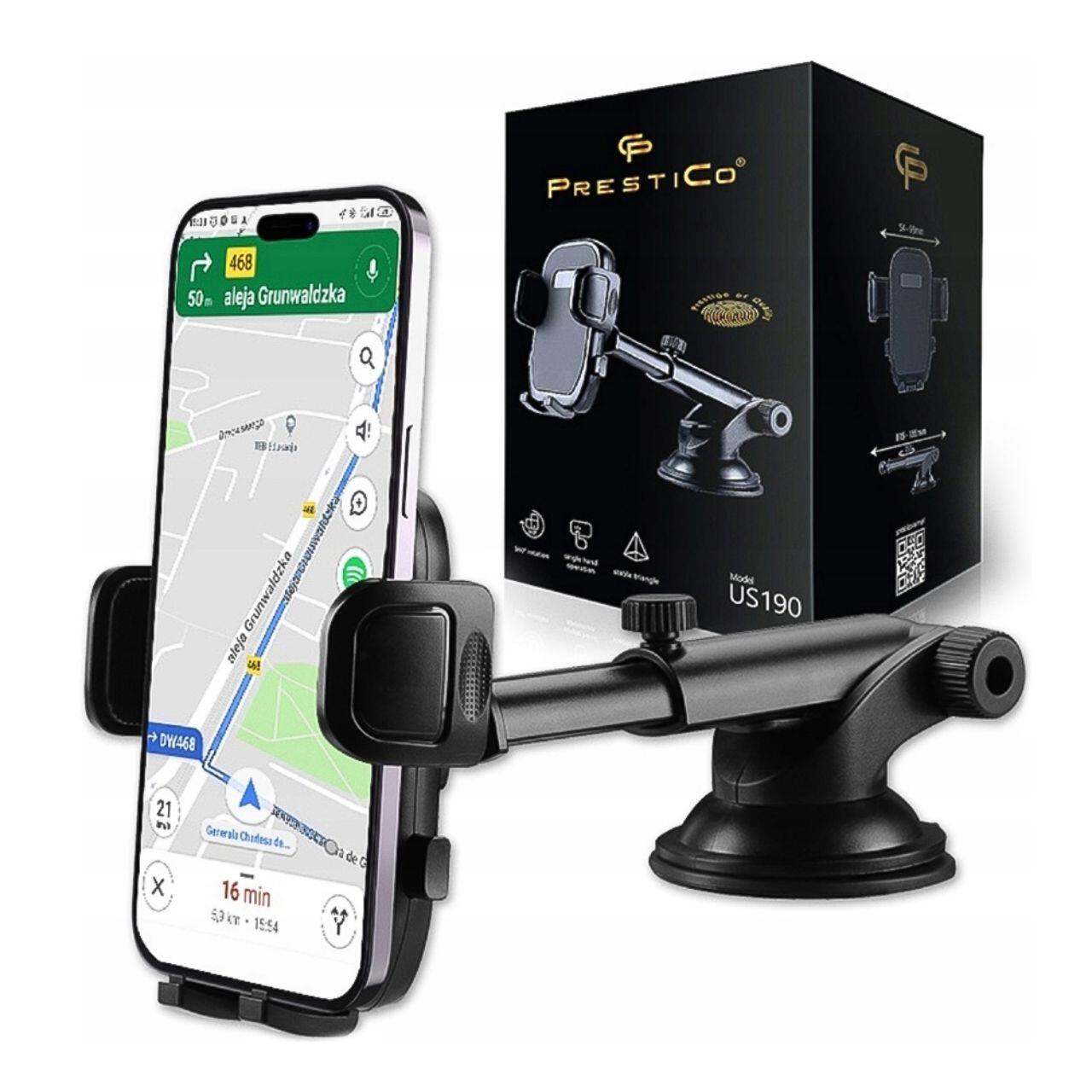 Prestico Autohouder US190 met dashboardhouder, 360 graden draaibaar, Zwart