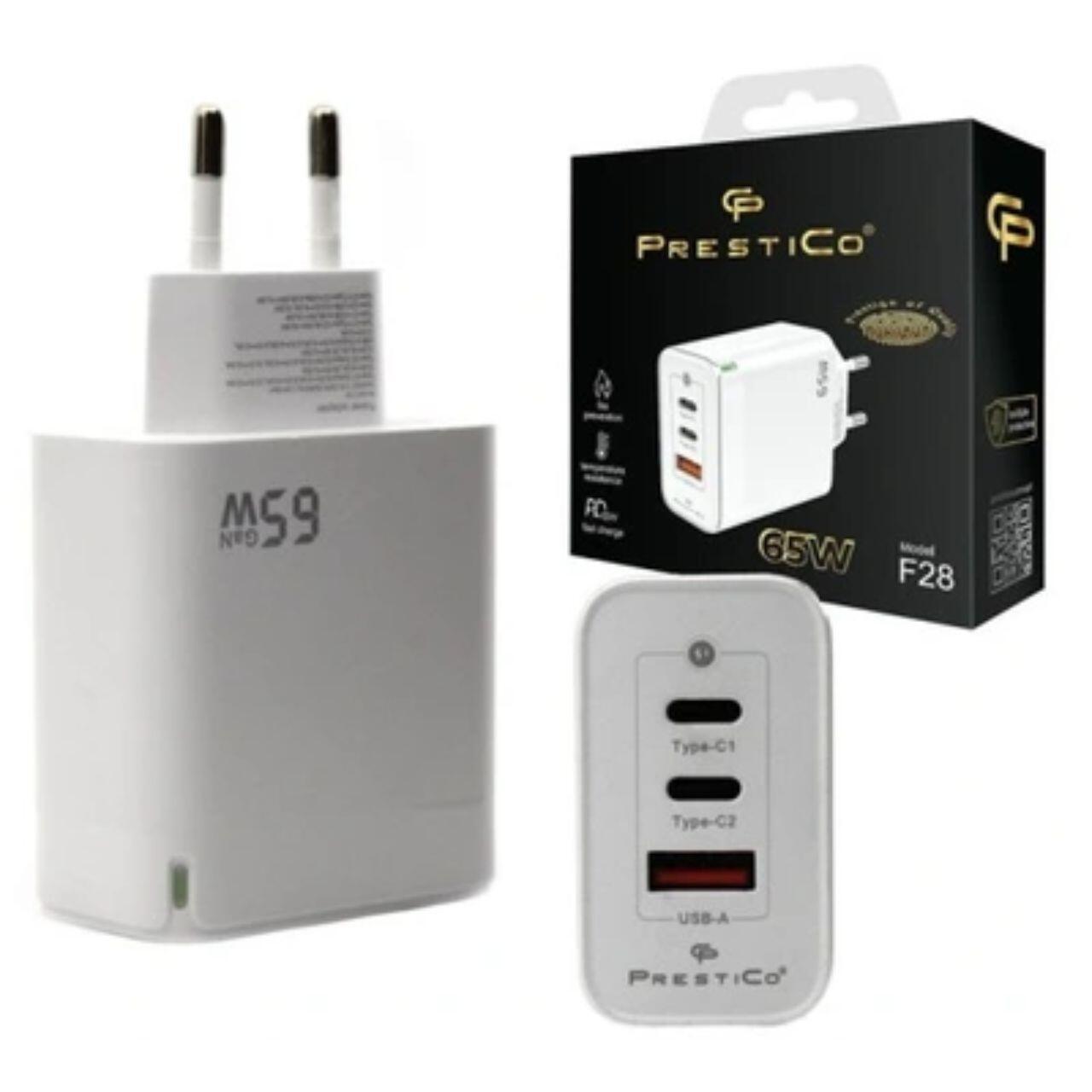 Prestico Netwerklader F28 2 x USB-C PD, 1 x USB QC, Snelladen, 65W Wit