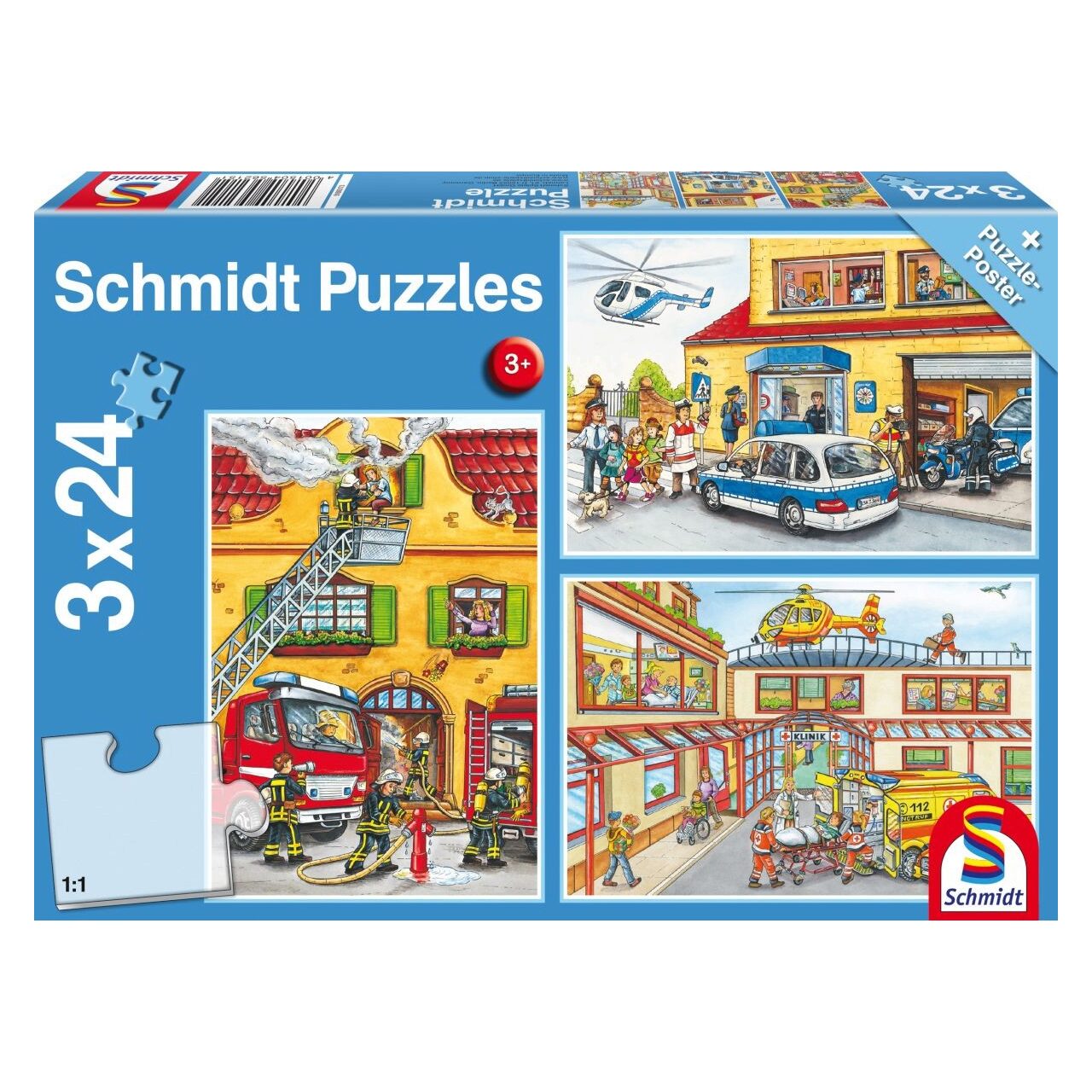 Schmidt puzzel - Brandweer en politie, 3x24 stukjes, inclusief 1 poster