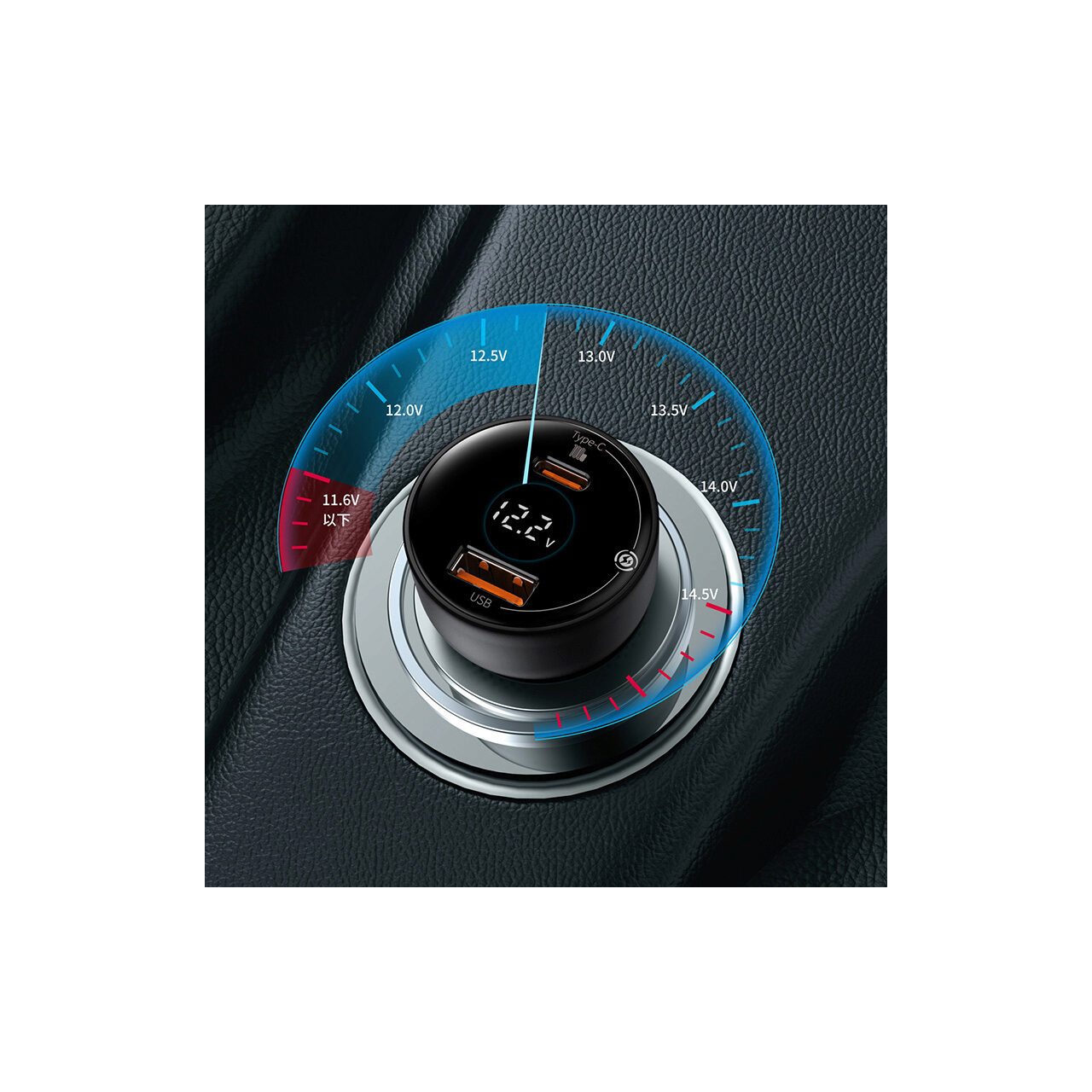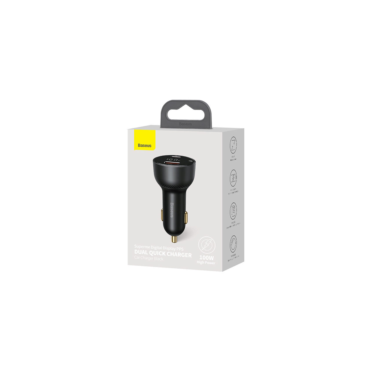 USB-autolader en Type-C Baseus Dual Superme digitaal display PPS Zwart