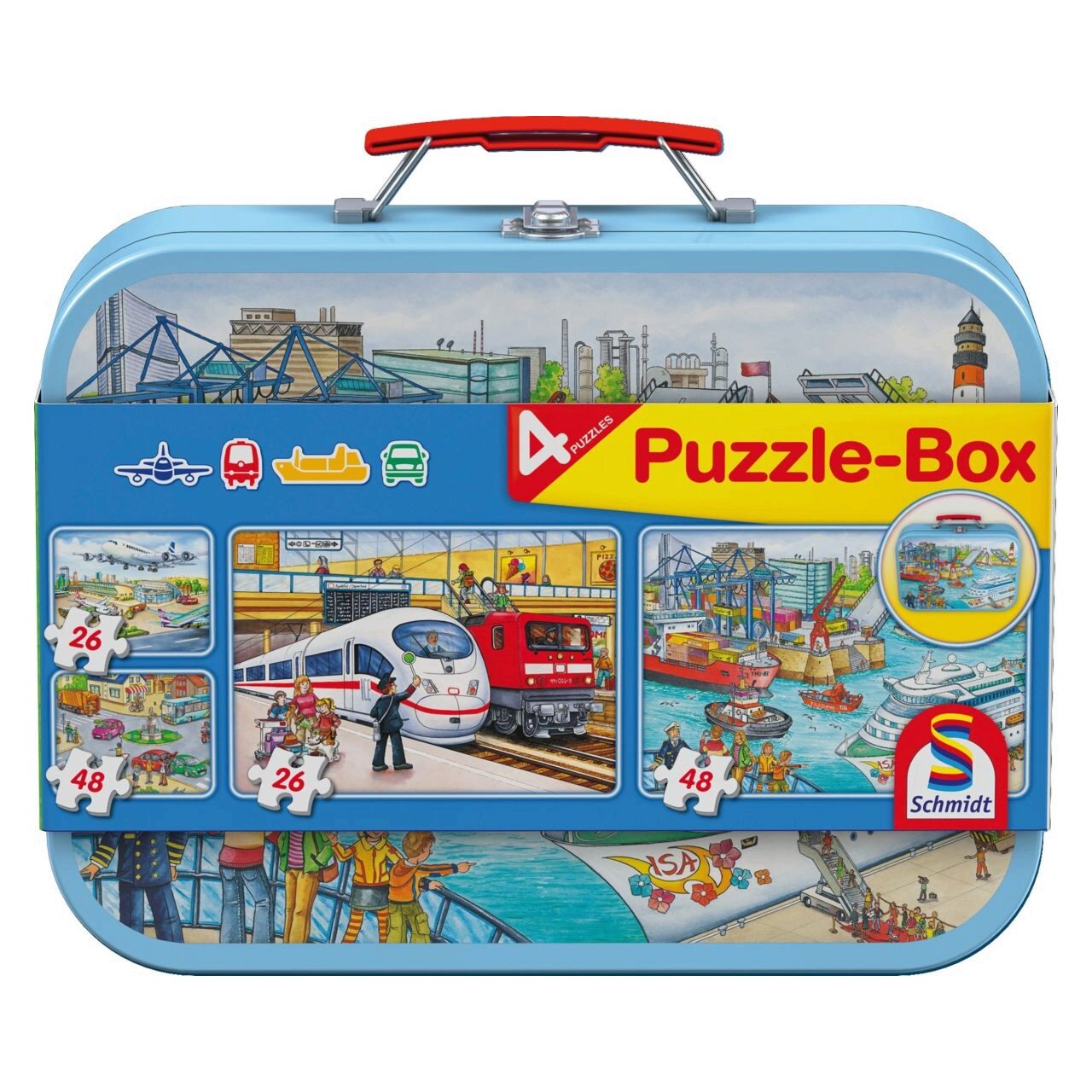 Puzzle Schmidt - Vehicles, 2x26 + 2x48 pieces, metal box