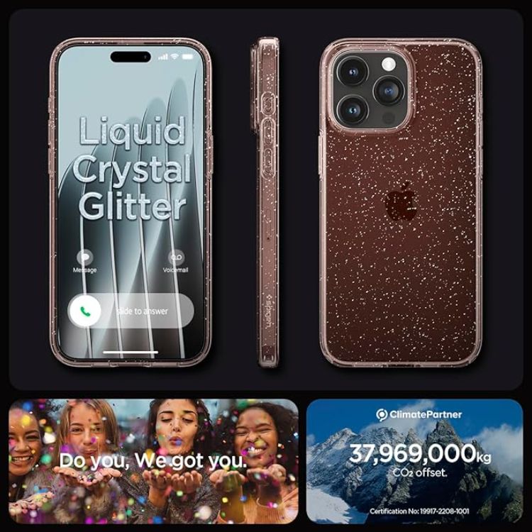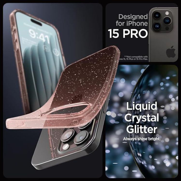 Husa Liquid Crystal Glitter iPhone 15 Pro Rose Quartz este realizata din silicon flexibil transparent ce preia eventualele vibratii ale unui soc si protejeaza impotriva zgarieturilor.