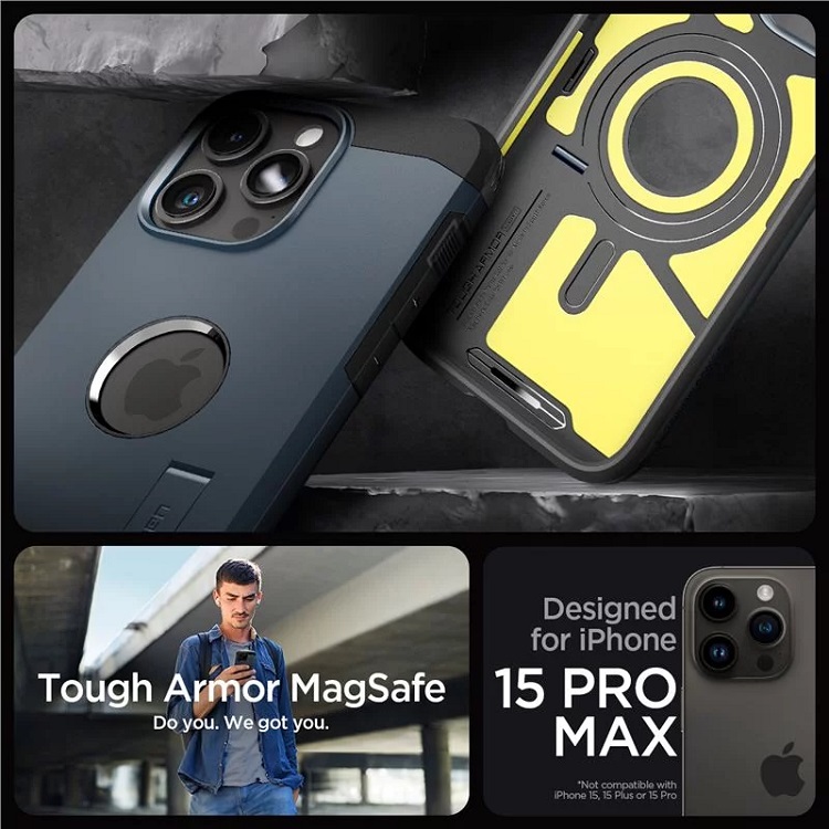 Spigen Husa Tough Armor MagSafe iPhone 15 Pro Max Metal Slate