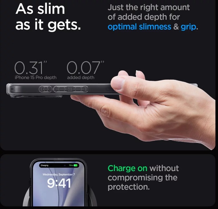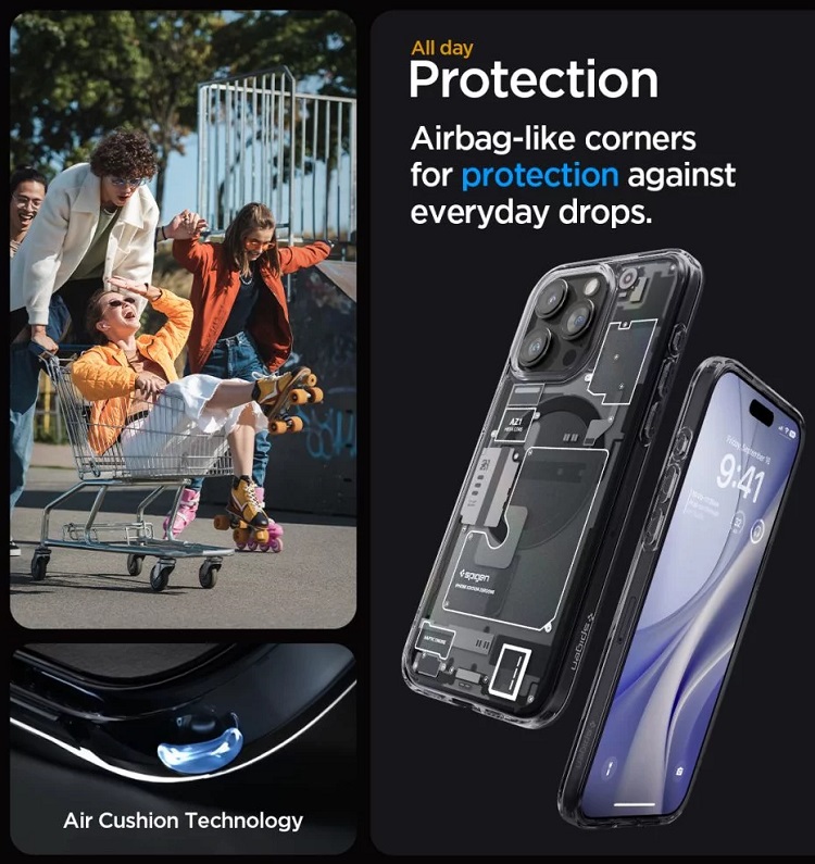 Nu restrictioneaza accesul la porturile externe si protejeaza eficient telefonul in timpul caderilor, este solutia de protectie perfecta, mentinand in acelasi timp greutatea si grosimea minime.Montarea si demontarea de pe telefon se face usor datorita materialului flexibil din care este confectionata pe margini. Husa este compatibila cu incarcarea wireless.